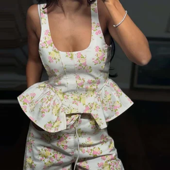 Elegant Women Sleeveless Mini Dress with Pleated Hem Patchwork JKP7425