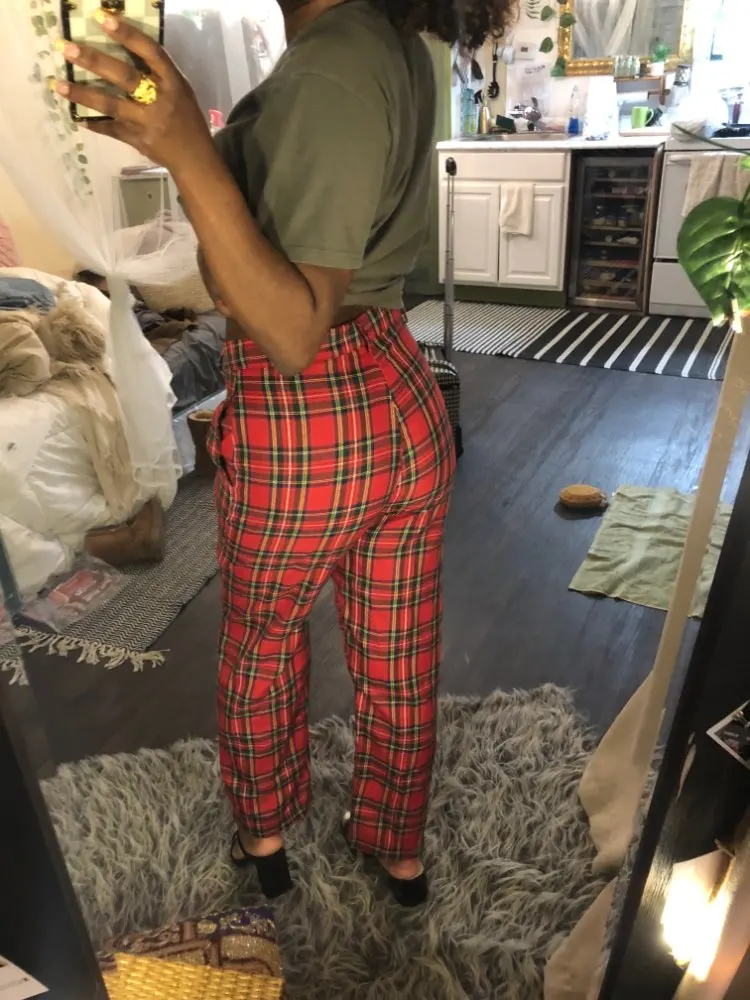 cute pants, thin but good quality. sad they didn’t fit :/ also makes hips look super weird :/ i wish they did fit