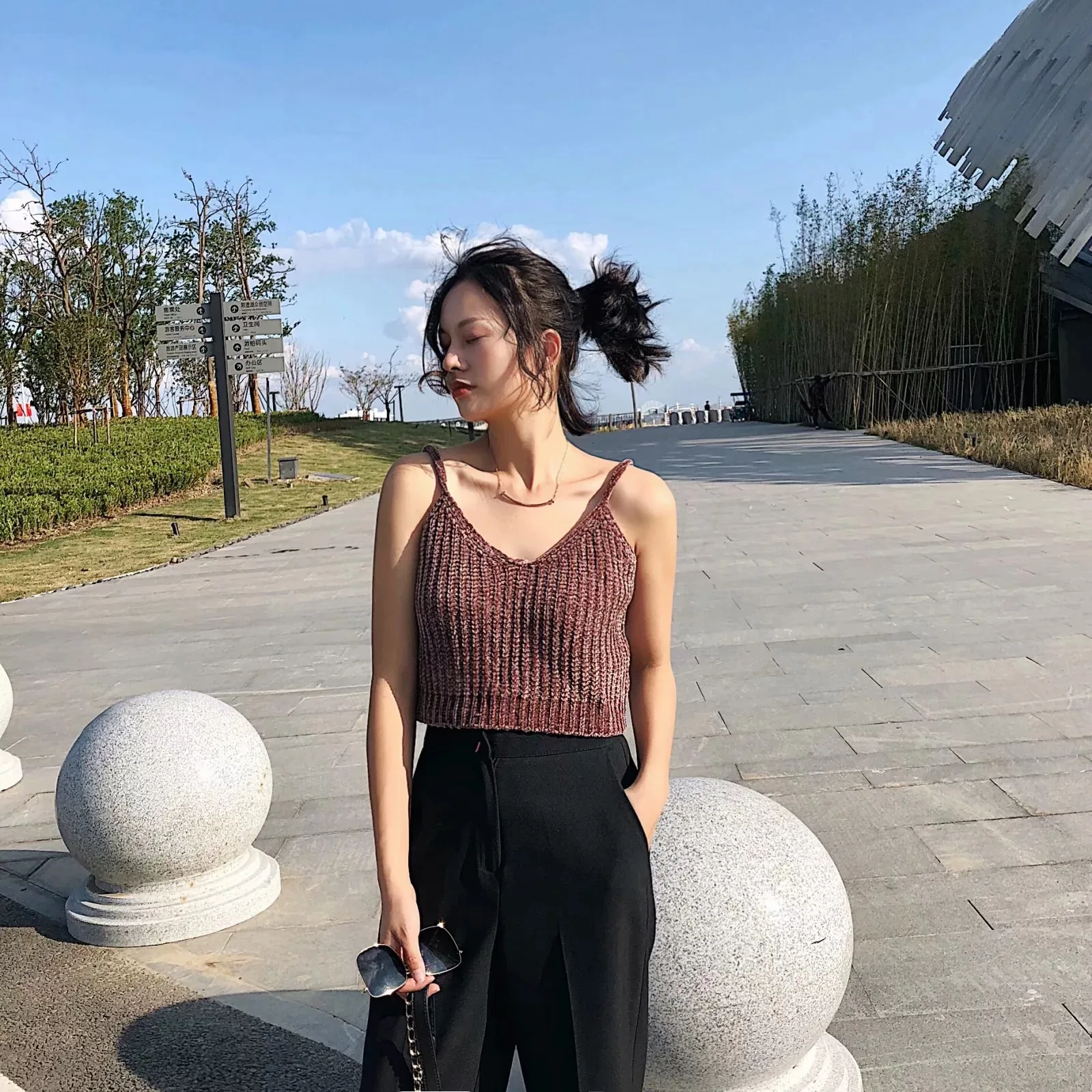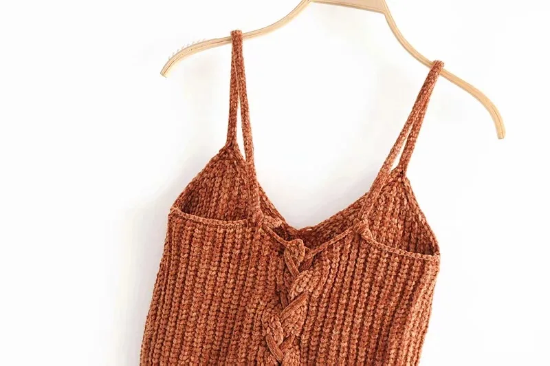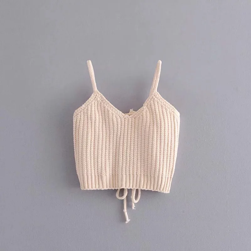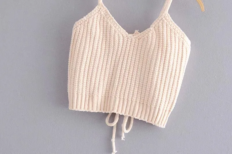 ✓ FREE SHIPPING Women Lace Up Details Knitted Strappy Camis Vest Sweater JKP1428![]()