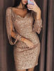 FREE SHIPPING New arrival Women Tassels Gold Sliver Sequined Bandage Evening Party Dress Summer V Neck Club Wear Package Hip Dress JKP1868