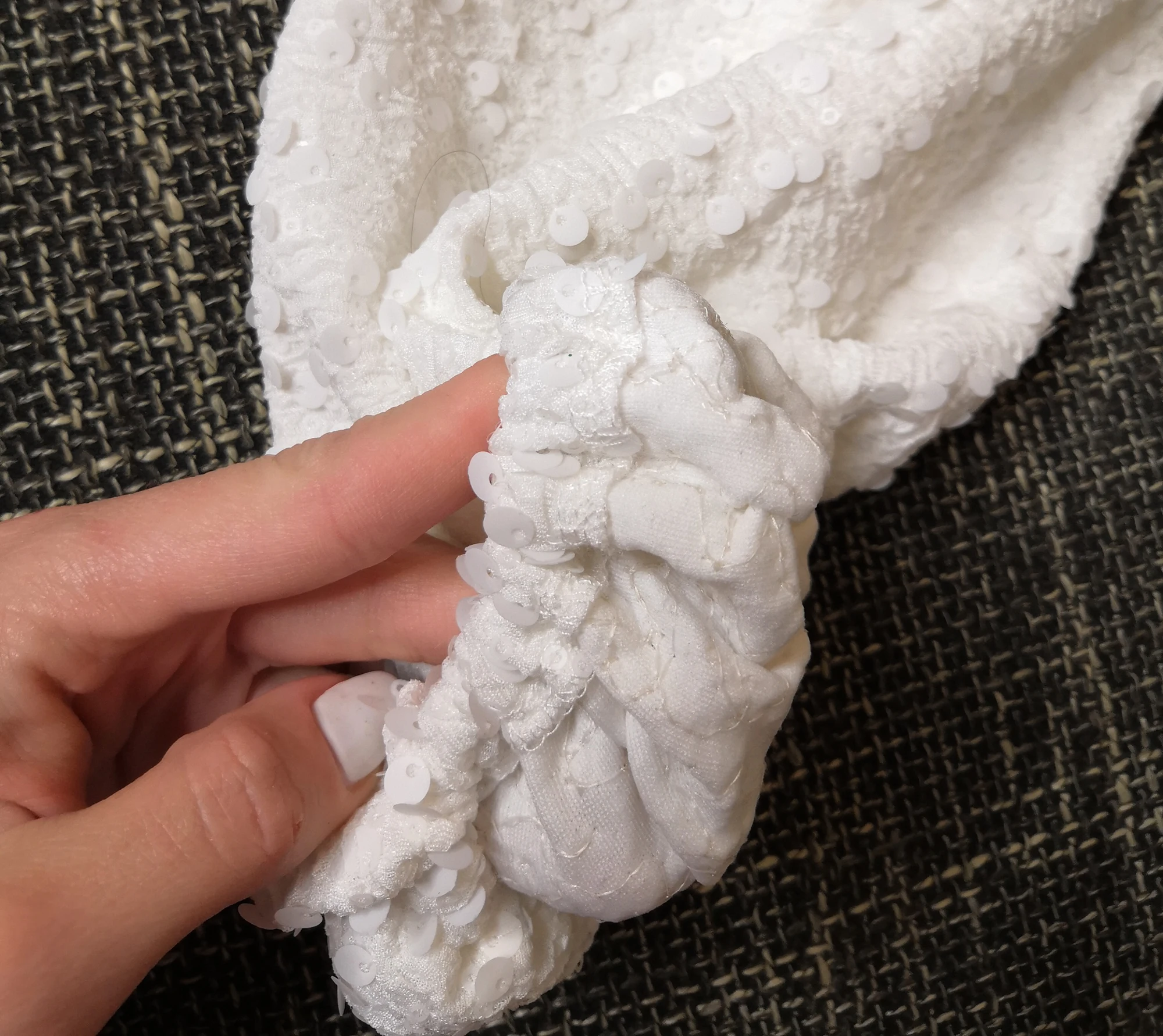 The dress is just gorgeous! The material is dense, the seams are stitched qualitatively. A little prickly due to sequins. Delivery is fast. Thank you very much to miss ord store!