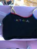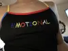 EMOTIONAL Letter Embroidery Cropped Spaghetti Strap Tank Tops JKP3795