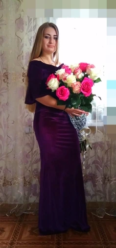 Wonderful dress! So excited to open the package and saw this awesomr pleasent color! The dress is excatky the same as in the picture. The material of the dress is velvety and is very soft and pleasent to the skin. I will surely wear it on my sister's wedding. I also want to thank the store for this beautiful dress and for the great service and communication they provide to their customers. I highly appreciate it! Soon will take some photos and add some additional feedback.