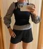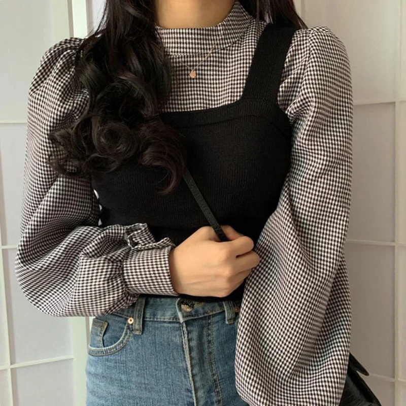 2020 Fahsion Suits Elegant Sets Half Turtleneck Lantern Long Sleeve Pullover Blouse + Slim Knitted Short Vest