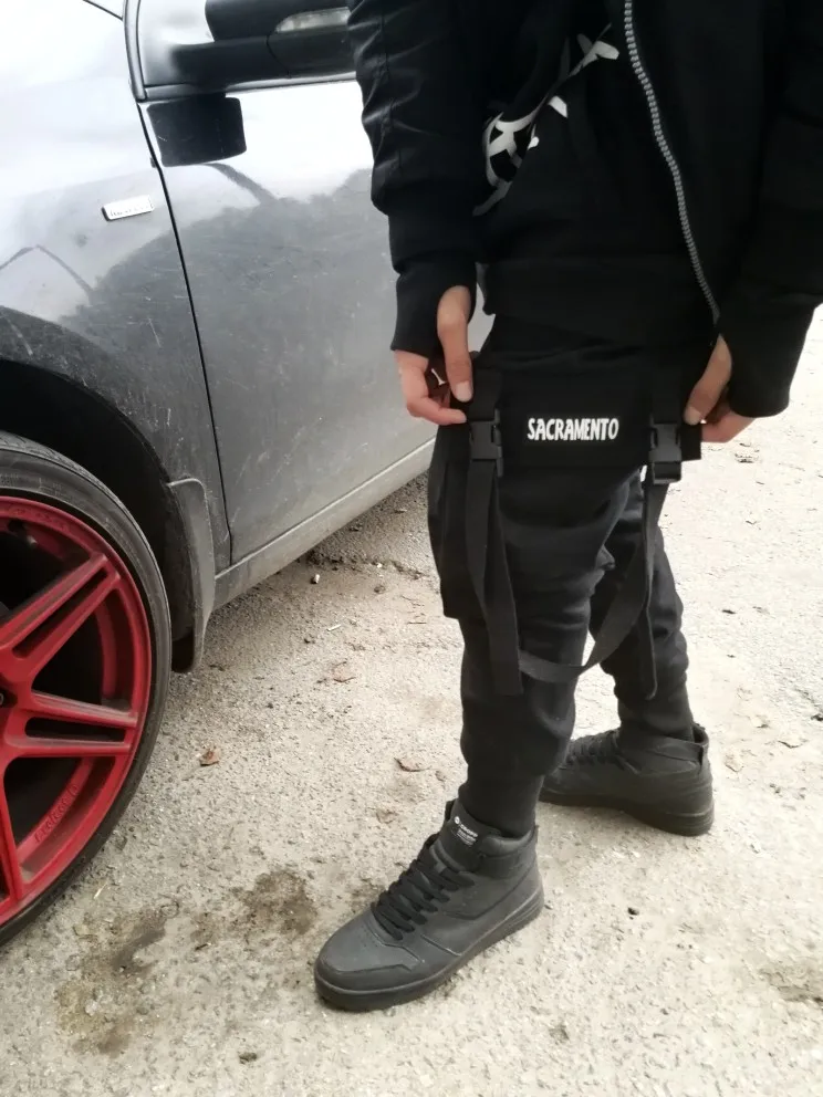 2020 Hip Hop Joggers Men Black Harem Pants Multi-pocket Ribbons Sweatpants Streetwear Casual JKP3804