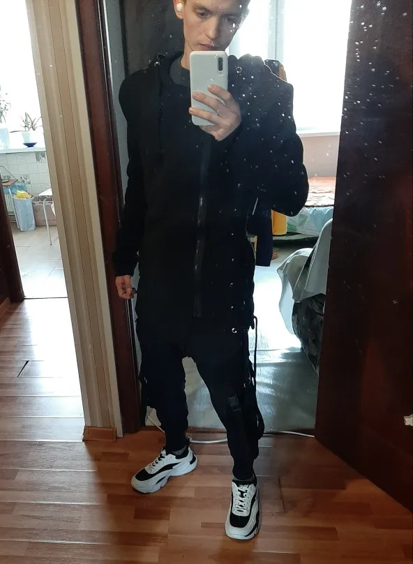 What's up guys?! In general, the order came for 19-20 days to sergiev posada (moscow region) 6 days lay in the post office already in my city, but they did not have something there, and i showed that the parcel was still on the way. About the jogger themselves, then fully correspond to the description. All as in the photo. At its height of 181 and weight 63 took xxl, relying on feedback. They sat perfectly. Threads do not stick out, the material is quality. The jogger has no belt loops, but there is no need for them, as there is a lace in an elastic band on the belt, which can be tightened if the belt is too big. Pockets are voluminous and reliable. These rope ribbons can be unfastened or adjusted as you want. Pleased with the keychain from the store as a gift. In the photo there was little time so i could not convey all the details. In general, order if you also like similar style. Pants cost their money, besides, we have similar difficult to find, and when found, they cost two or three times more expensive. After washing, i will add a supplement to the review, let's see whether or not.