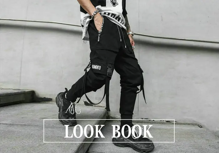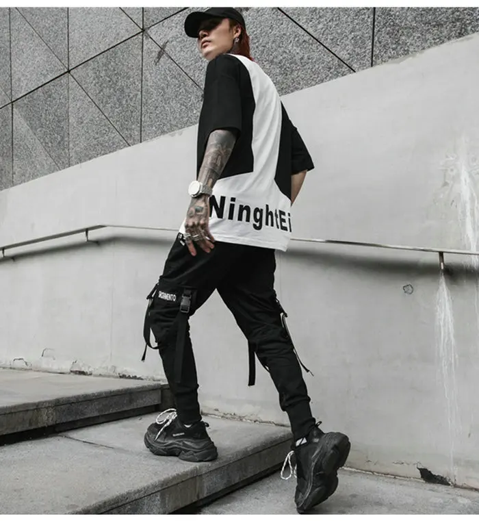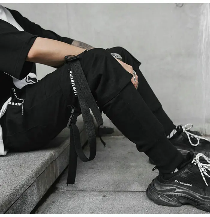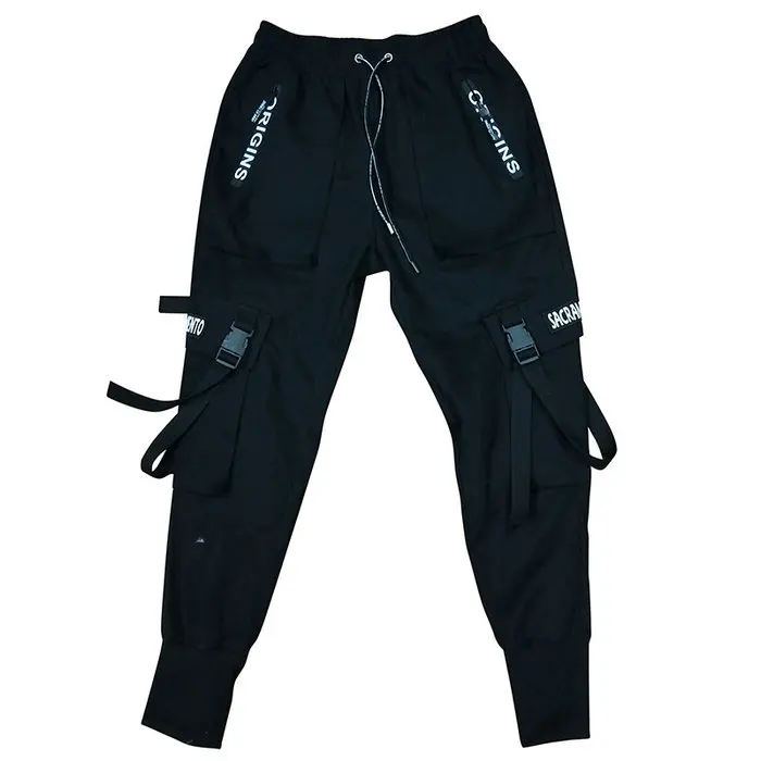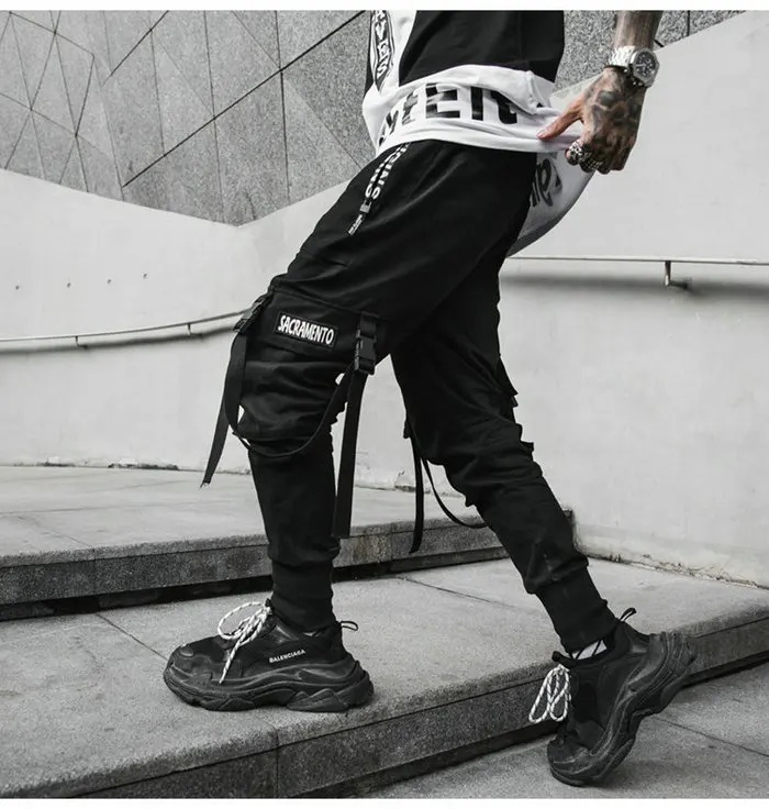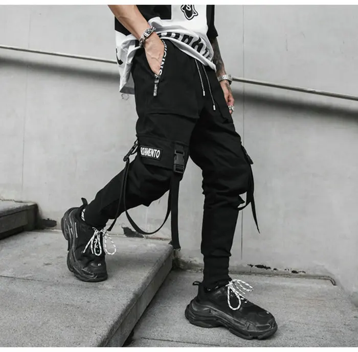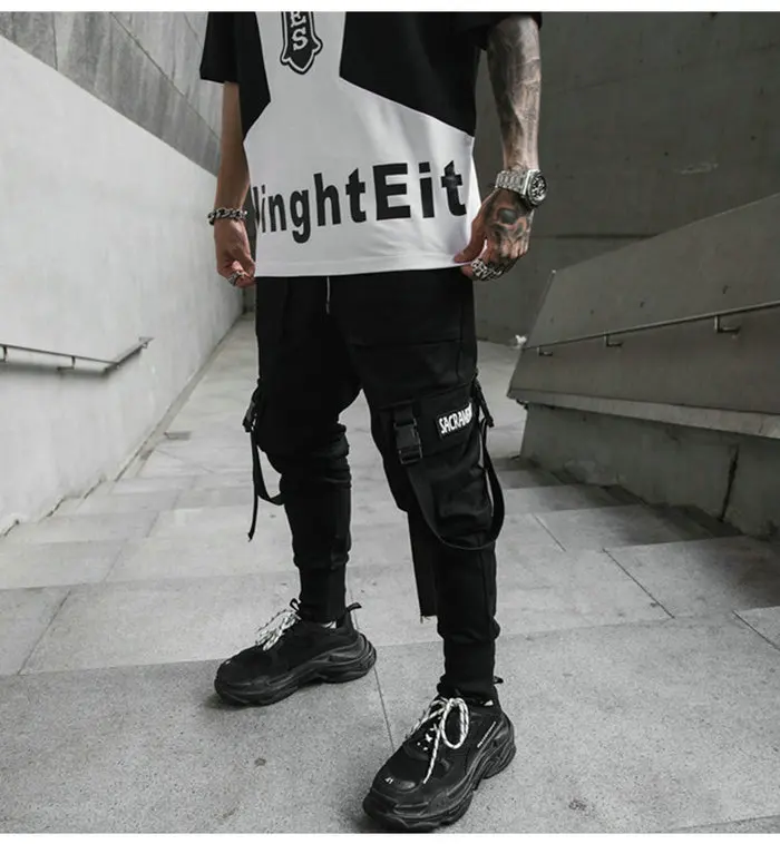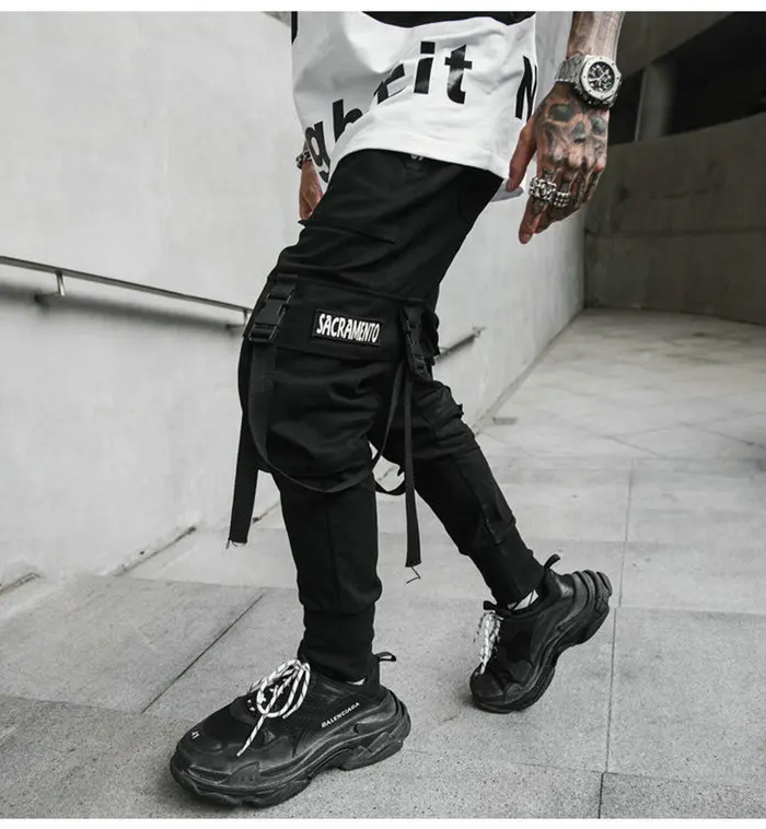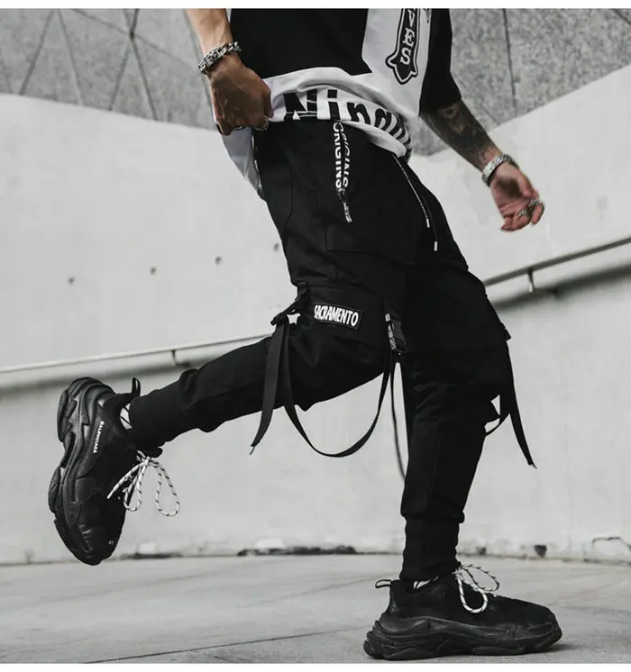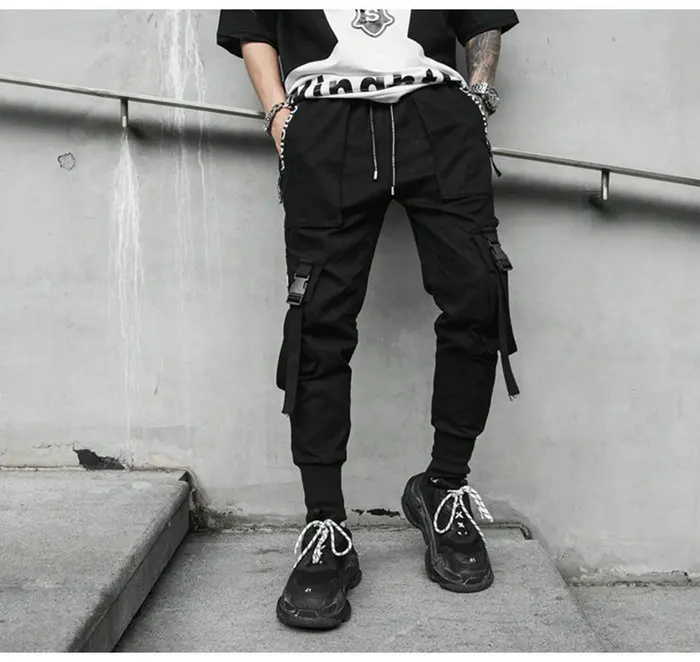 2020 Hip Hop Joggers Men Black Harem Pants Multi-pocket Ribbons Sweatpants Streetwear Casual JKP3804