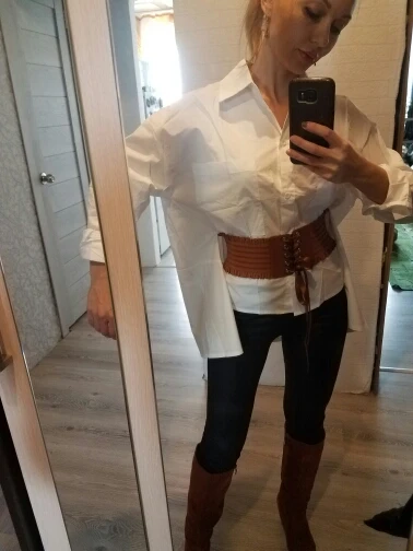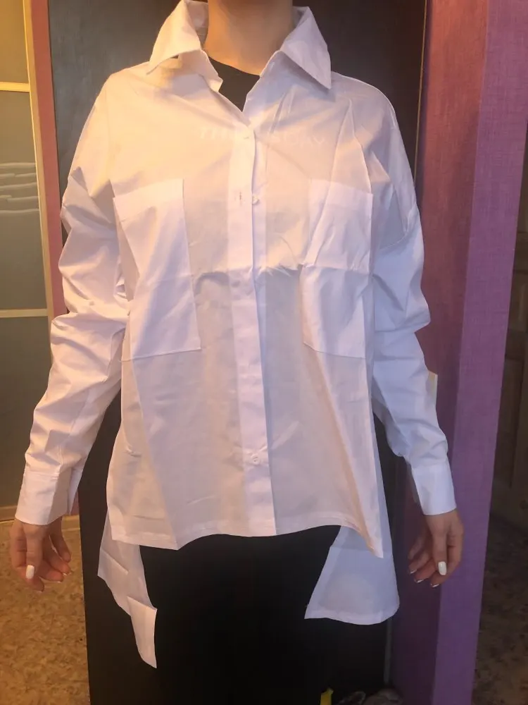 2020 New Spring Autumn Lapel Blous Long Sleeve White Back Long Loose Big Size JKP3876