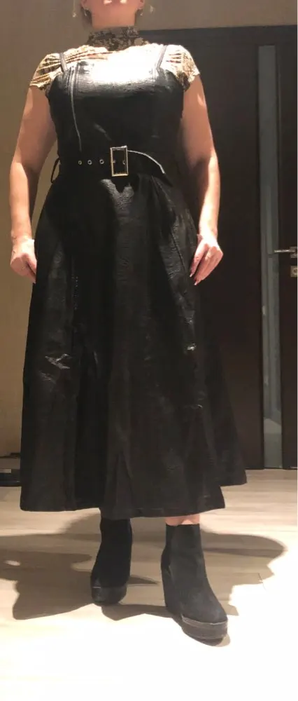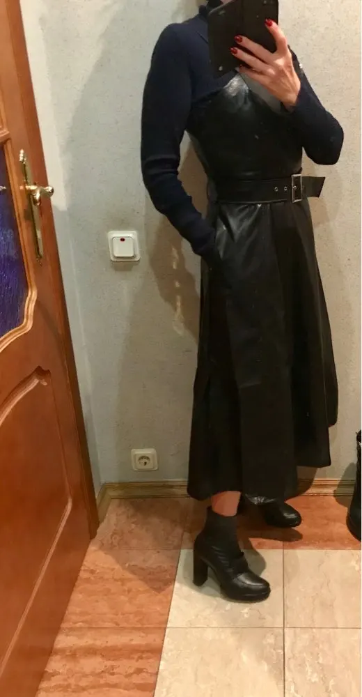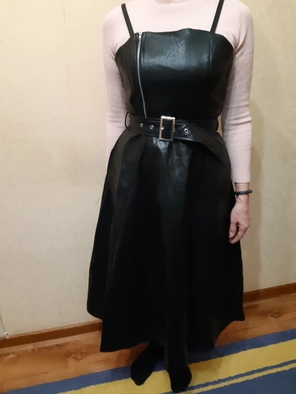 The order came in the stated terms. Sarafan is very satisfied. The first thing with Ali is very good quality, all the seams are even processed, there is a petticoat. The leatherette itself is thick, only in the cold season. Side there is a hidden zipper. Steamed without problems with a simple iron without touch. On the chest 85 back-to-back, on the big chest do not fit, waist 74-there is a small stock. I advise you to buy. I did not communicate with the store.