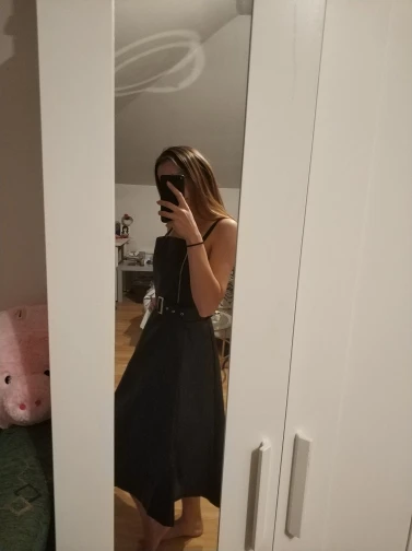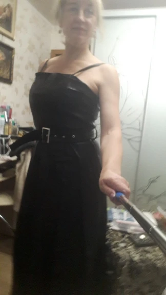 The dress is cool, it came for 2 weeks in the chest and waist freely on the parameters 85-60, but with a belt everything looks great. There was a strong smell, like any leatherette, then disappeared. Dense, shaped material.) The store is very attentive, I recommend the store and the goods.