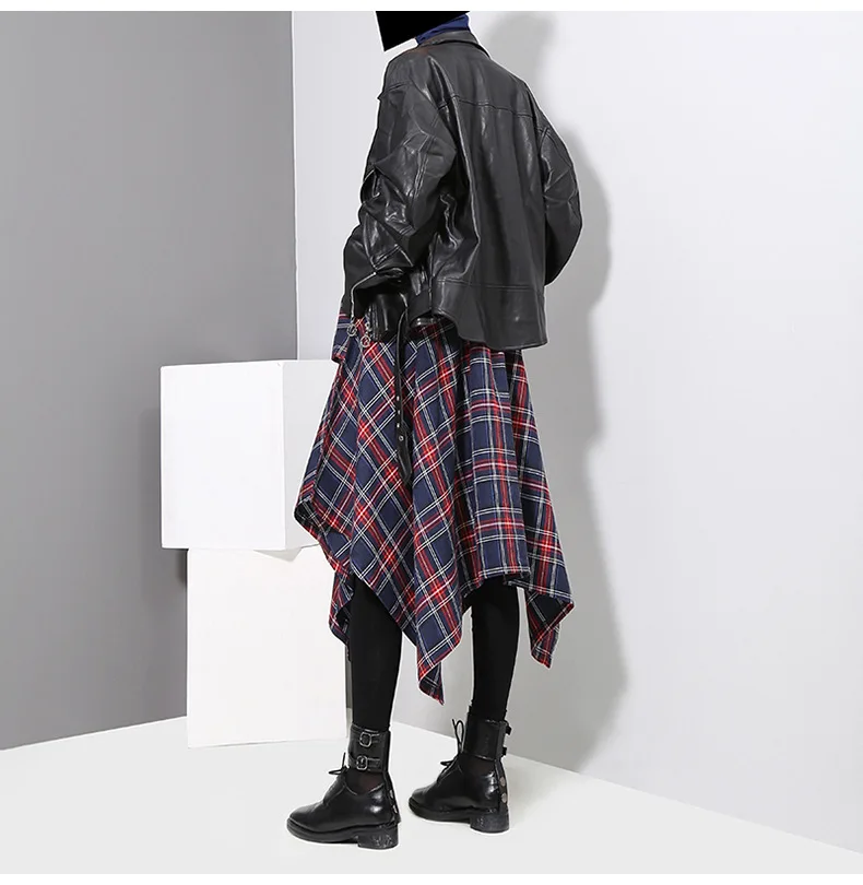 2020 Women Fashion Tide New Spring High Waist Red Plaid Skirt Harajuku Style Outfit JKP3881