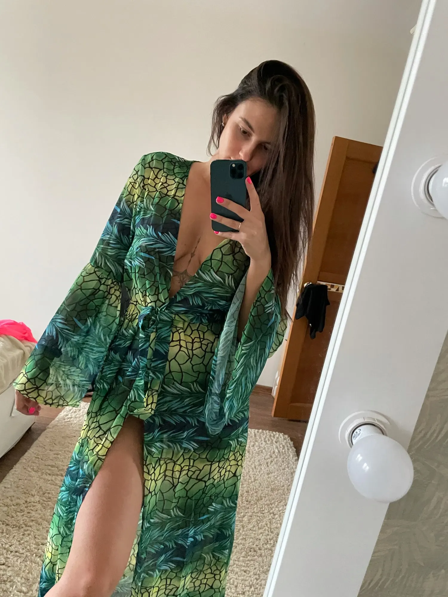 Stylish dress, the best beach dress I ordered, it can be worn not only on the beach, but also for the evening, at home, along the length pleased that not short, for a height of 175 cm, dress made of synthetics with a belt, came the goods quickly. For 2 weeks, I recommend to buy)