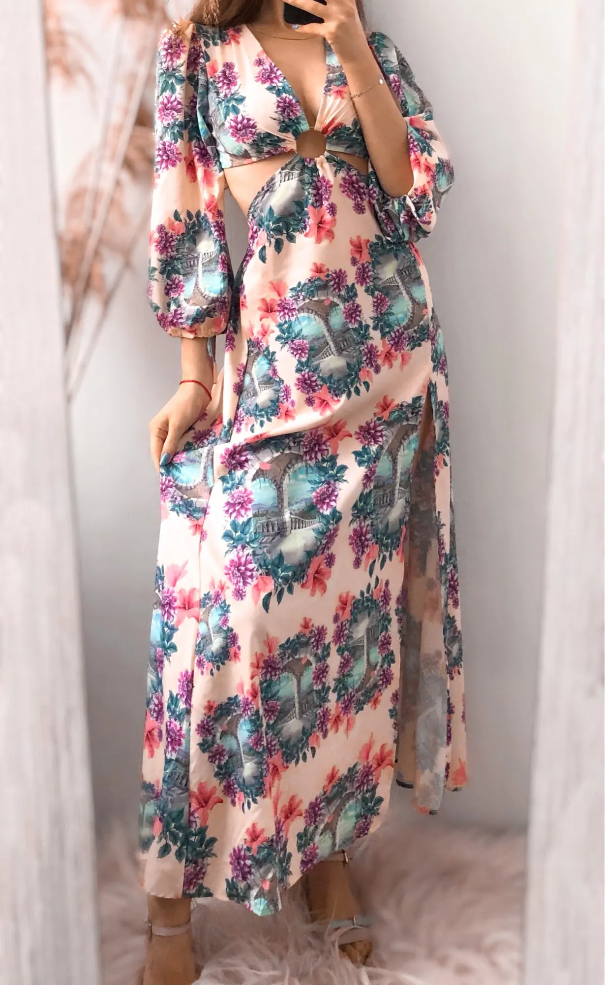 Chic dress! The style is just wow) sits perfectly, the length of the height is 170 just. The fabric is dense, does not shine through, soft, pleasant to the body. After washing does not shed, the picture is quality. The back is very beautiful) there is a zipper. Delivery to Ukraine about 3 weeks. Very satisfied with the order! I recommend the store and the store!