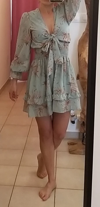 This dress is very nice, pale green very cute, the measurements of the table correspond I asked for a size L and I stay quite bn.
