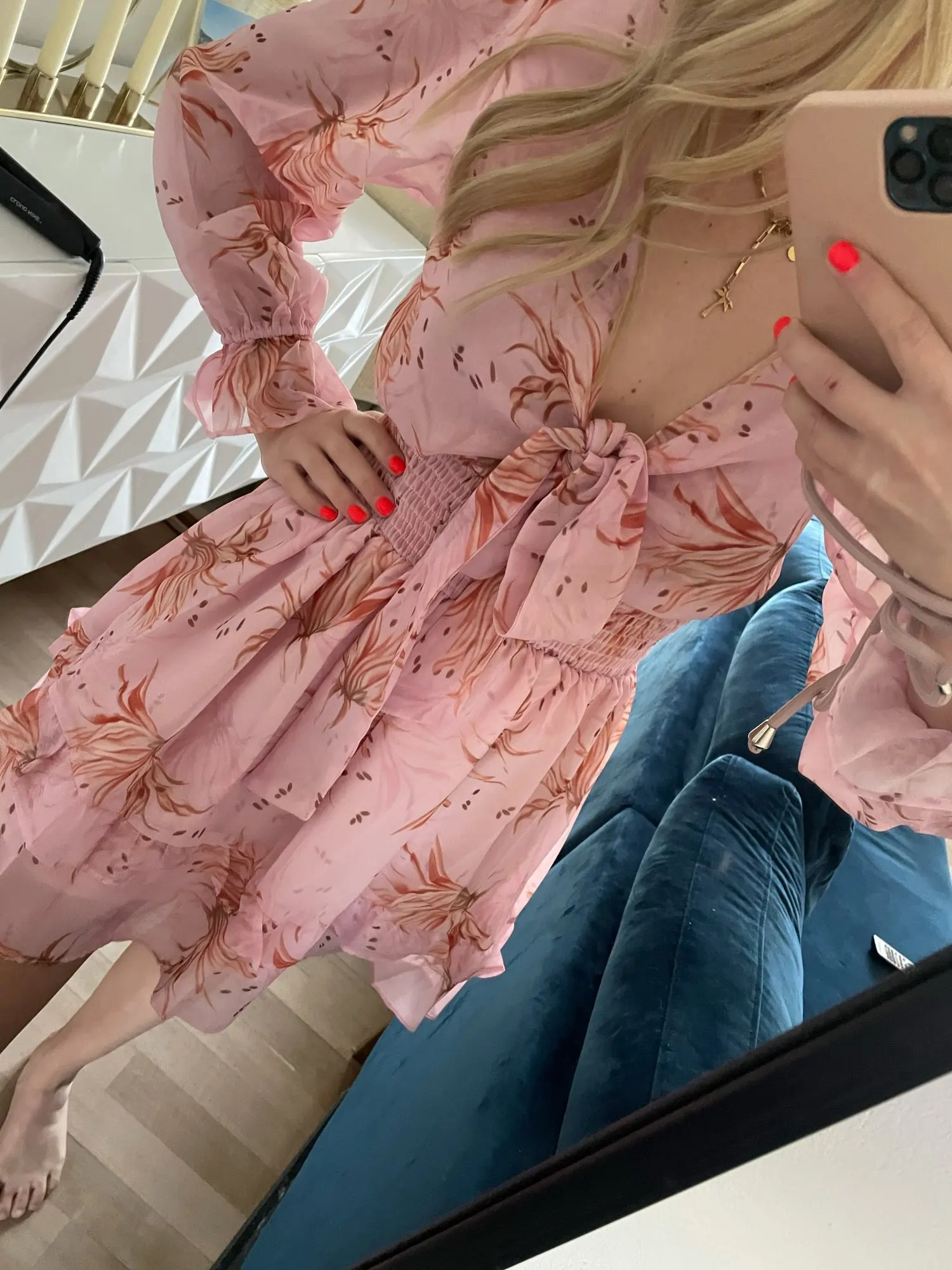 Beautiful dress. Delicate material. Perfect for summer and spring. Firecracker. Love wholeheartedly. Purchase ideal. UNDER bust tied so can fit for different size. My height 164 cm.