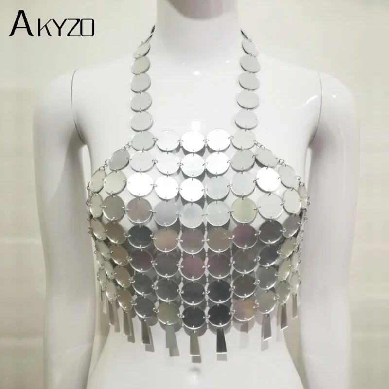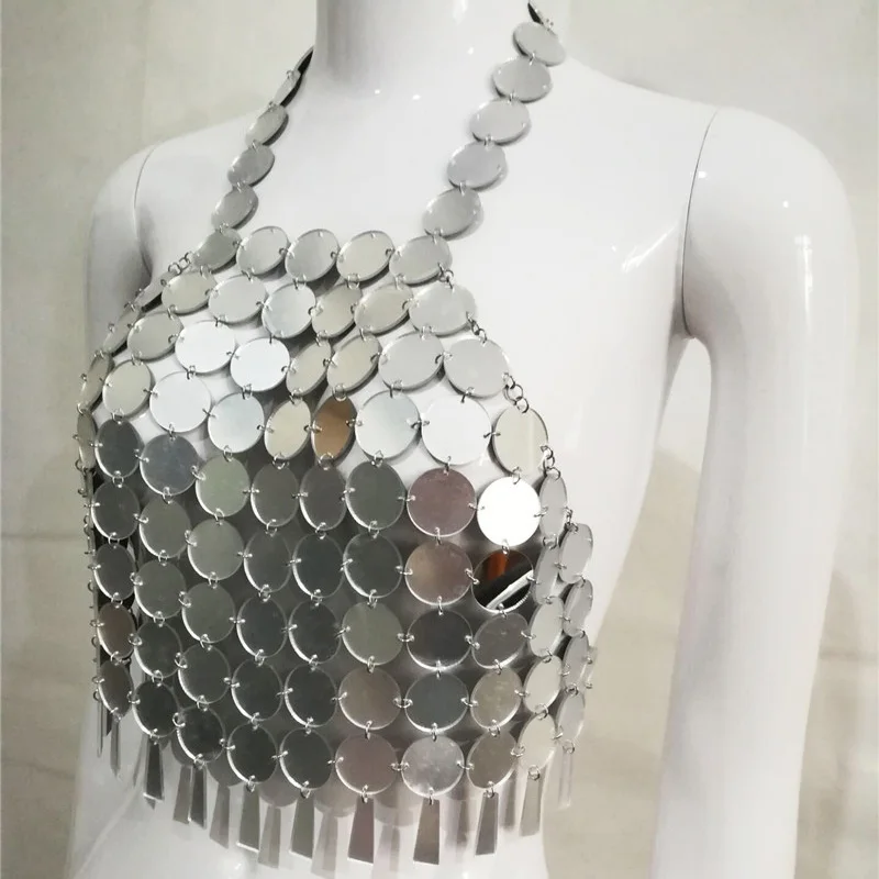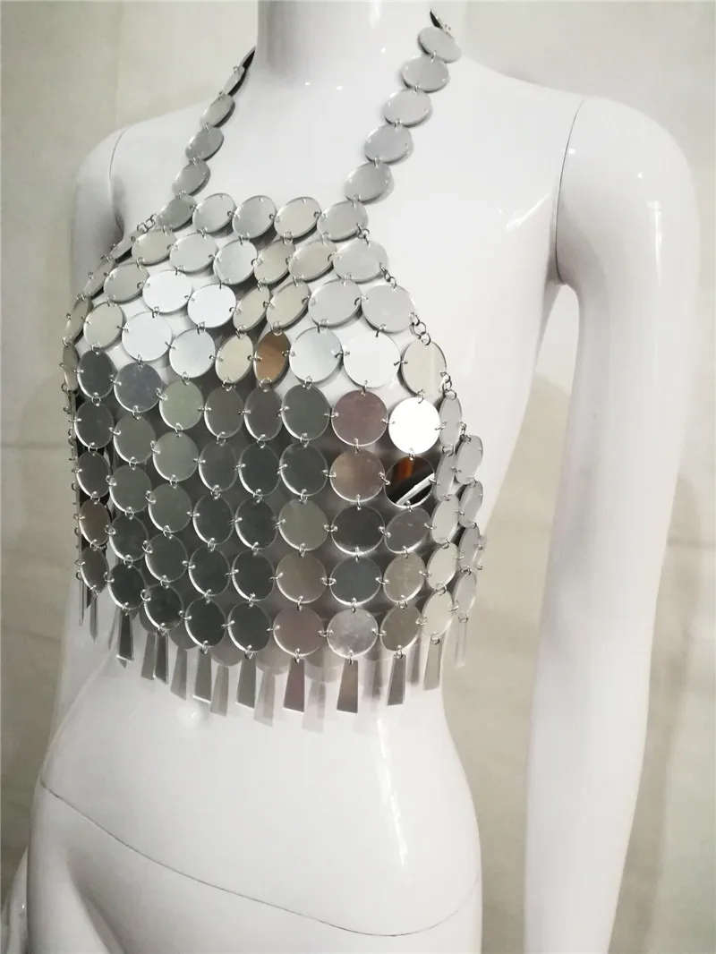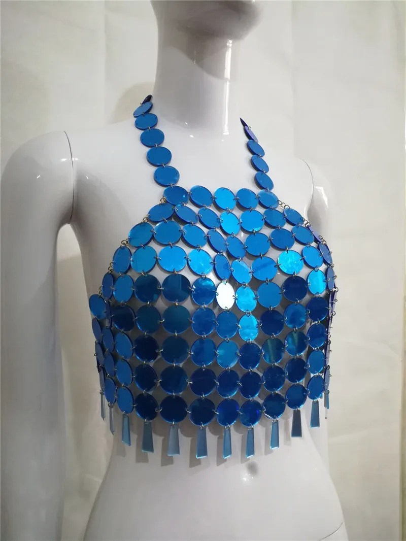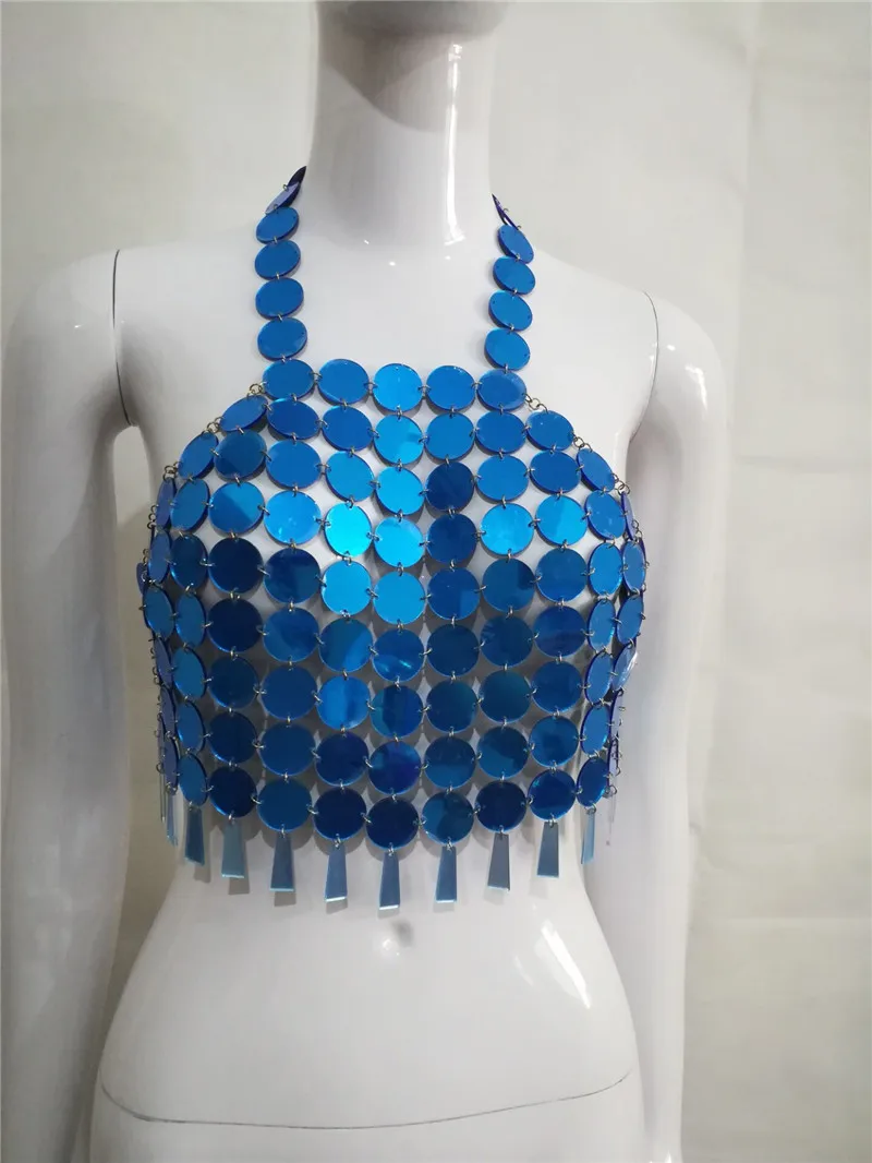 2021 Festival Croptop Midriff Circle Sequins Backless JKP4732