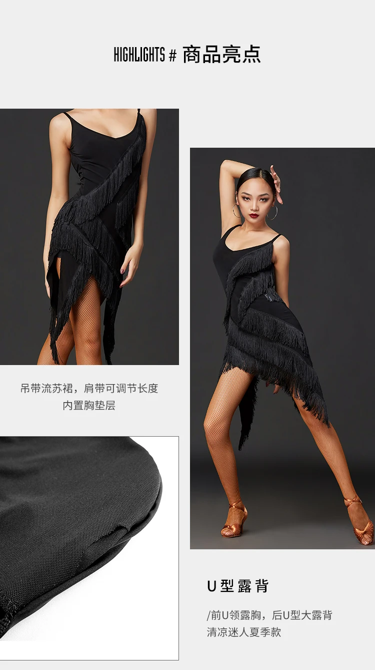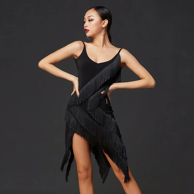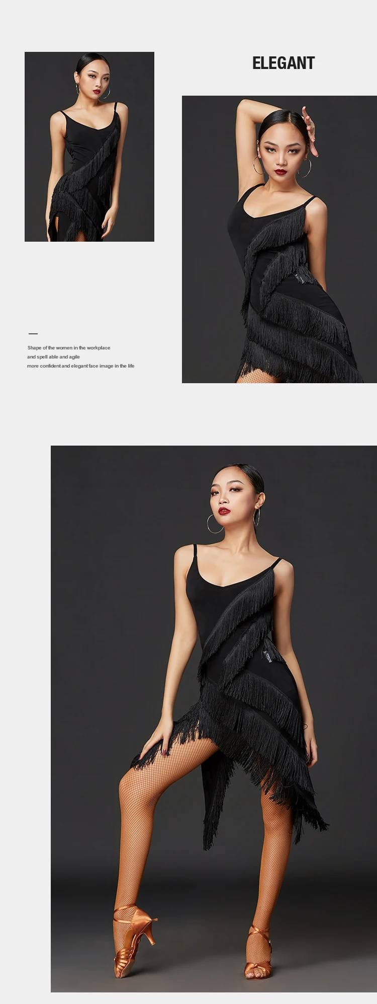 FREE SHIPPING 2022 New Fringed Dress Chacha Samba Tango Backless Latin Dance Competition JKP5909