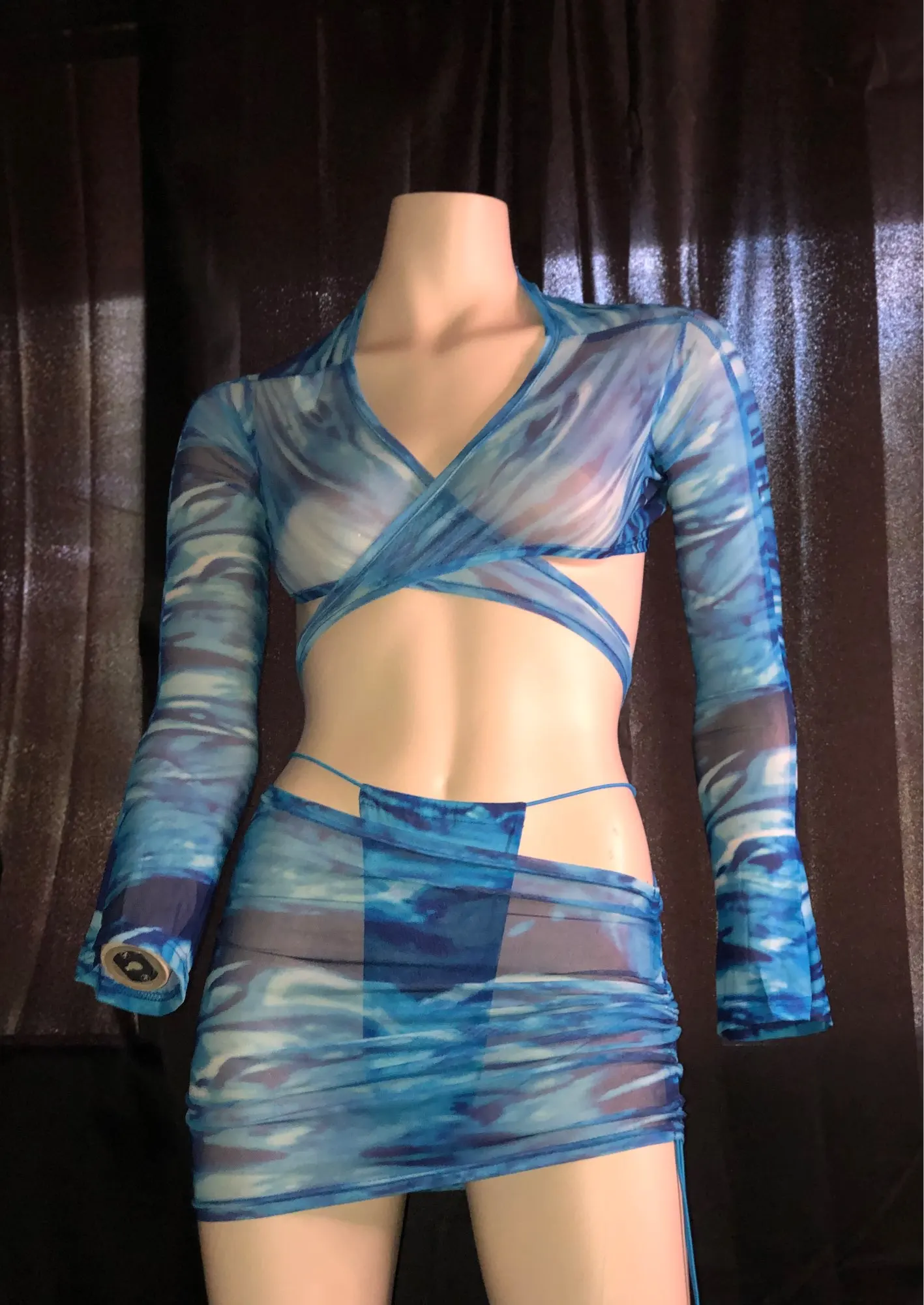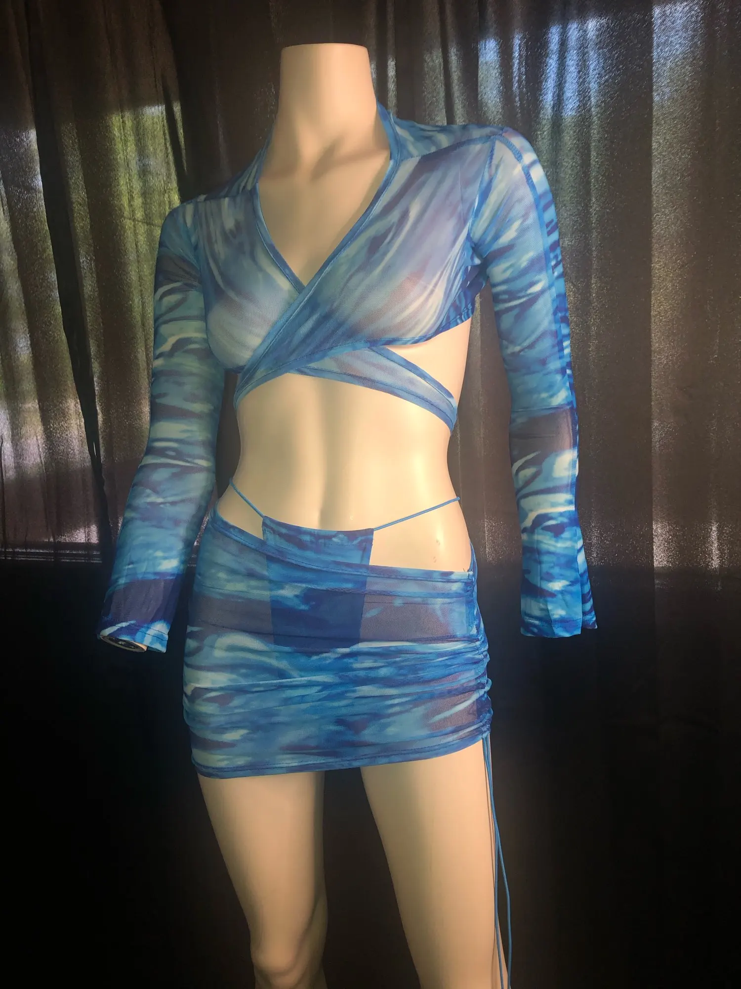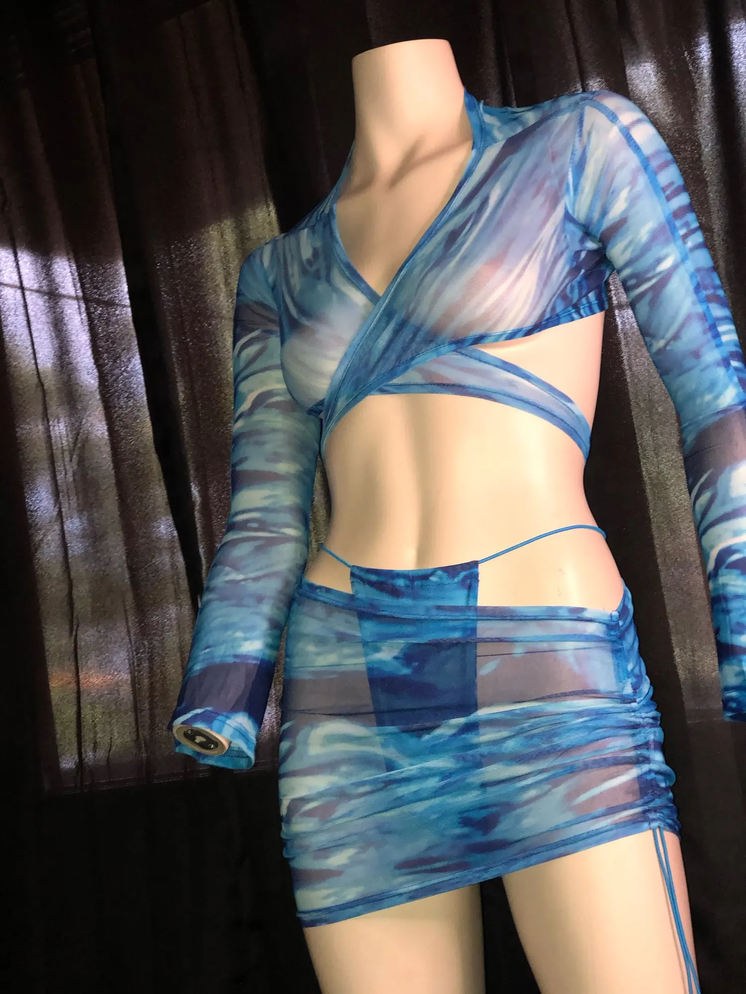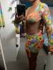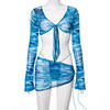 2021 Outfits Party Club Wear Two Piece Set Mesh Floral Printed JKP4664