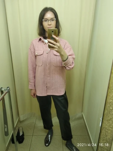 Here I now have this cute shirt). Worried that for my height 175 cm, there will be short sleeves. But they were perfect in length. Sewn in general neatly. I'll sew a stronger button, I will remove one button from the cuffs, especially under the second button, the loop is not completely cut. There will be two buttons on the stock. On the Russian m sits an oversize. The store and I recommend it.