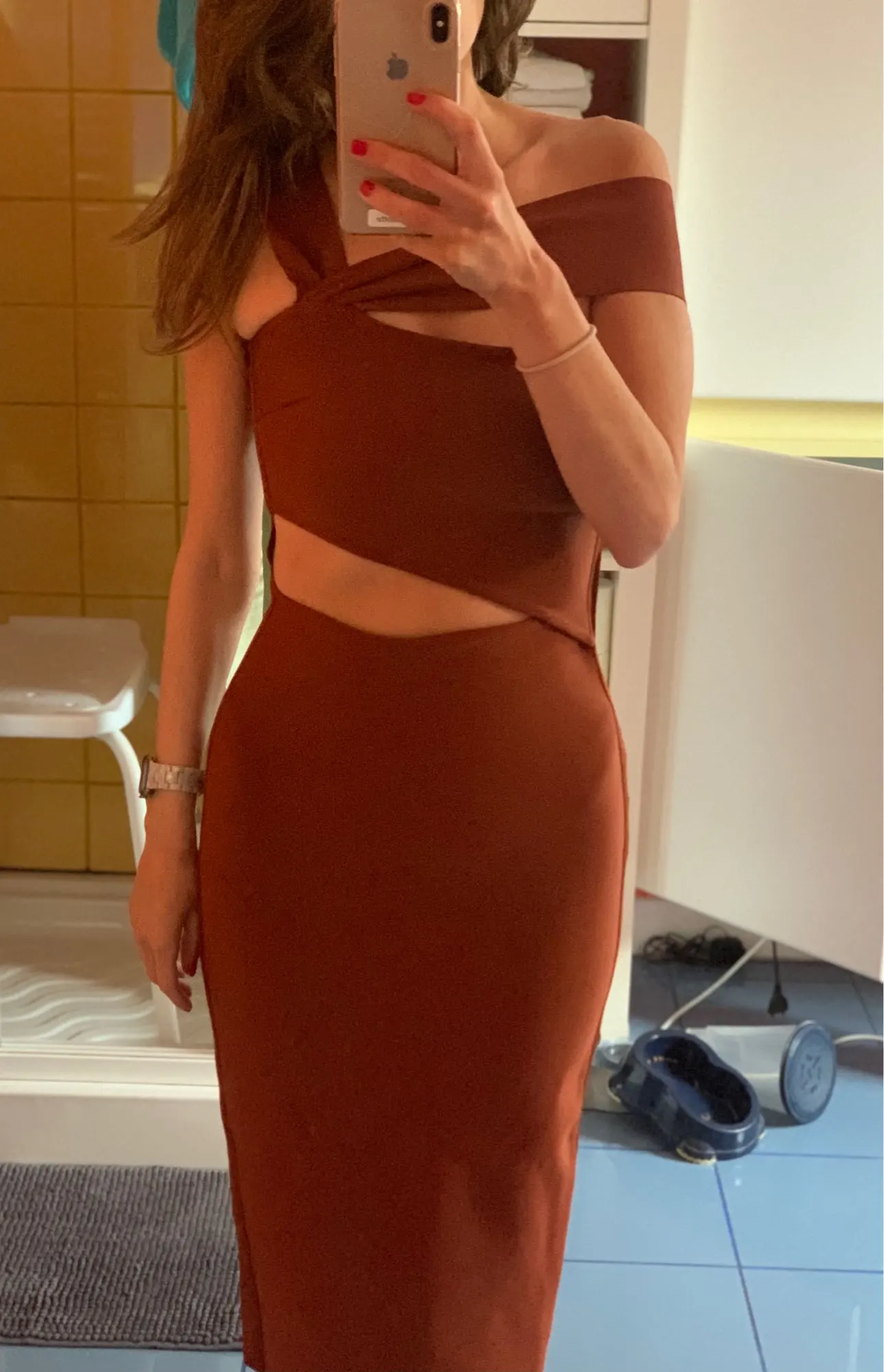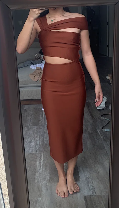 Dress is amazing!!! Quality at its best. This store never disappoints. I’m 71kg and I wear UK 10/12. Medium fits perfect. Took a month to arrive in Nigeria which in my opinion is a long time