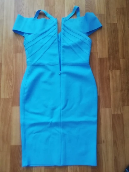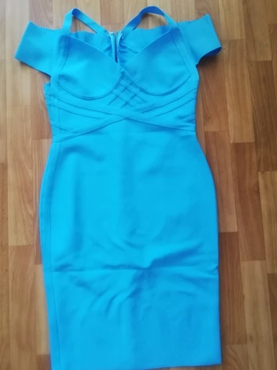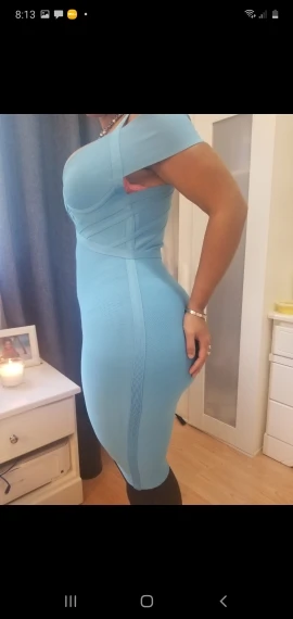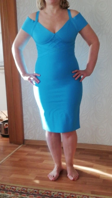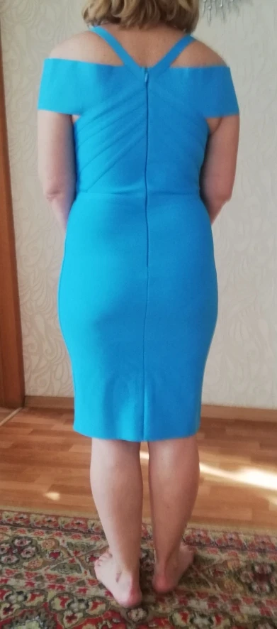 The dress is simply beautiful, as in the picture. It has a lovely color and stretchy material. However, I will have to return it and order a bigger size. Anyway - thank you, Seller. ;)