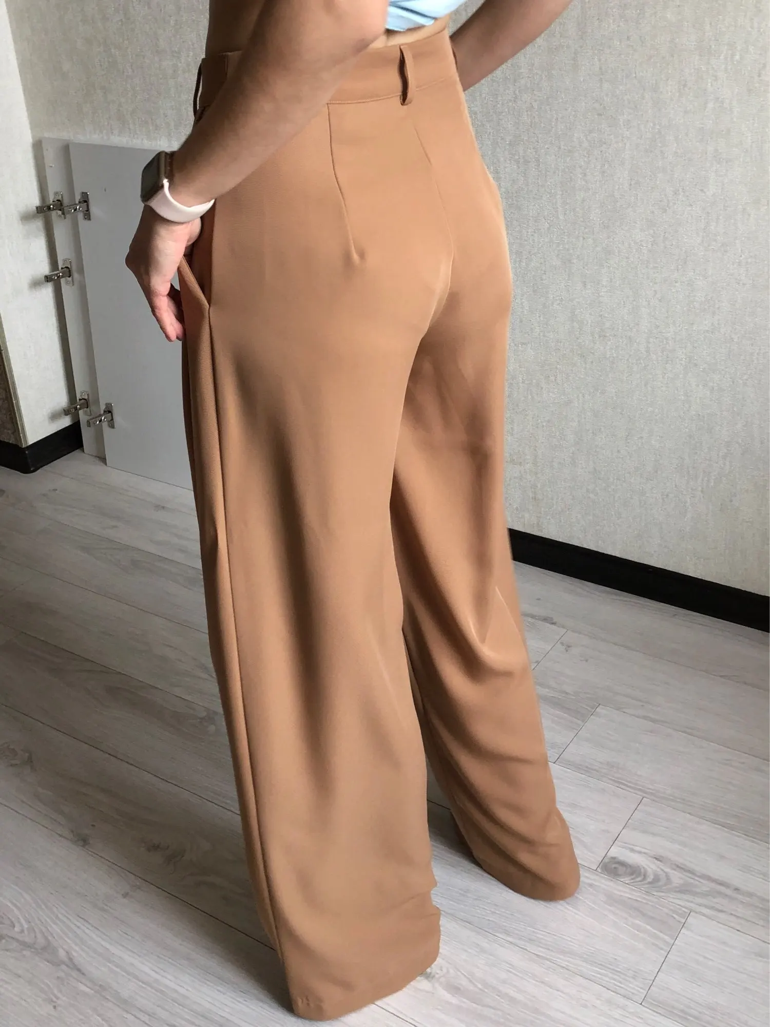 Идеальные брюки, которые я искала! Очень качественные! Строчки, крой, обработка швов-идеально! Ткань смотрится дорого-тяжёлая, струящаяся ...На параметры 96/71/100 заказала L, подошли идеально! Немного свободны, но мне это нравится! Возможно размер М тоже подошёл, но было бы туговато...на рост 164 длинные, но под каблук идеально! Подойдут высоким девушкам...пришли за 15 дней! Спасибо продавцу!