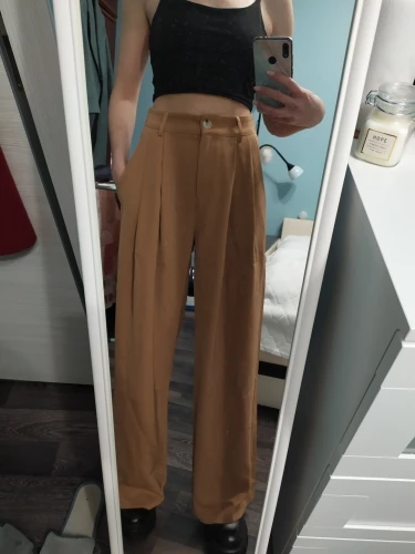 Шикарные брюки. Хорошее качество и приятный материал (тяжелый). Немножко просвечивают белье, если подобрать нюд, то будет отлично. На рост 164 брала самый маленький размер, но пришлось укорачивать. На попе сидят превосходно.