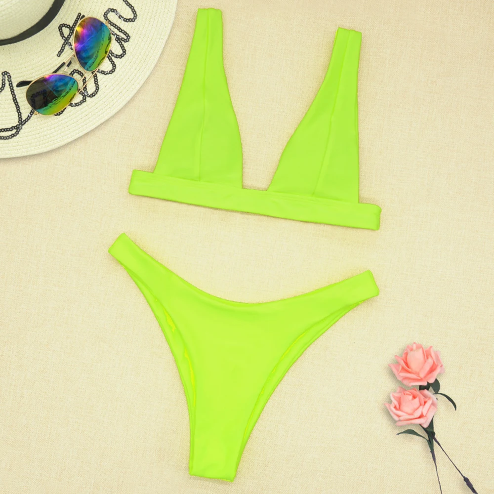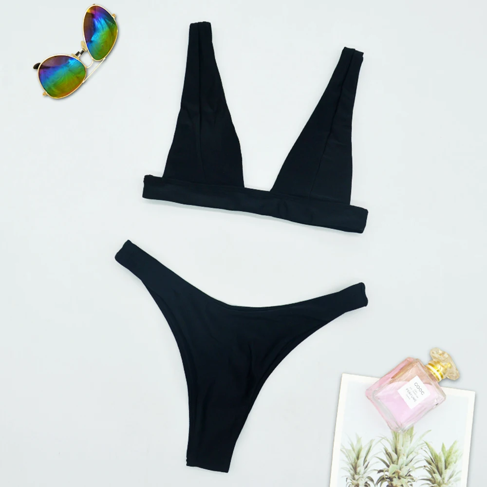 2023 New Brazilian Solid Bikini V-neck Low Waist Two Piece Swim Wear JKP6053