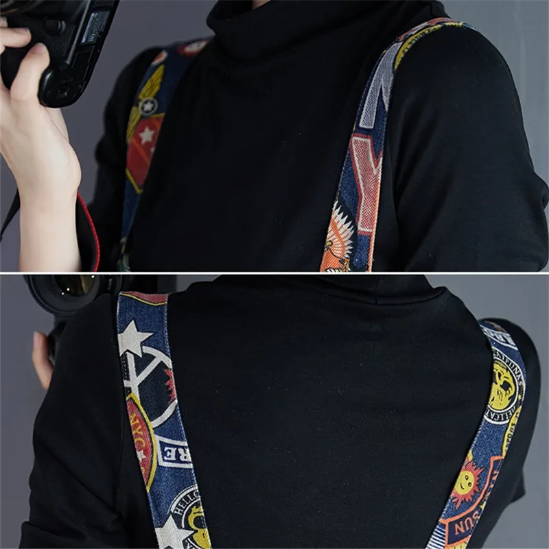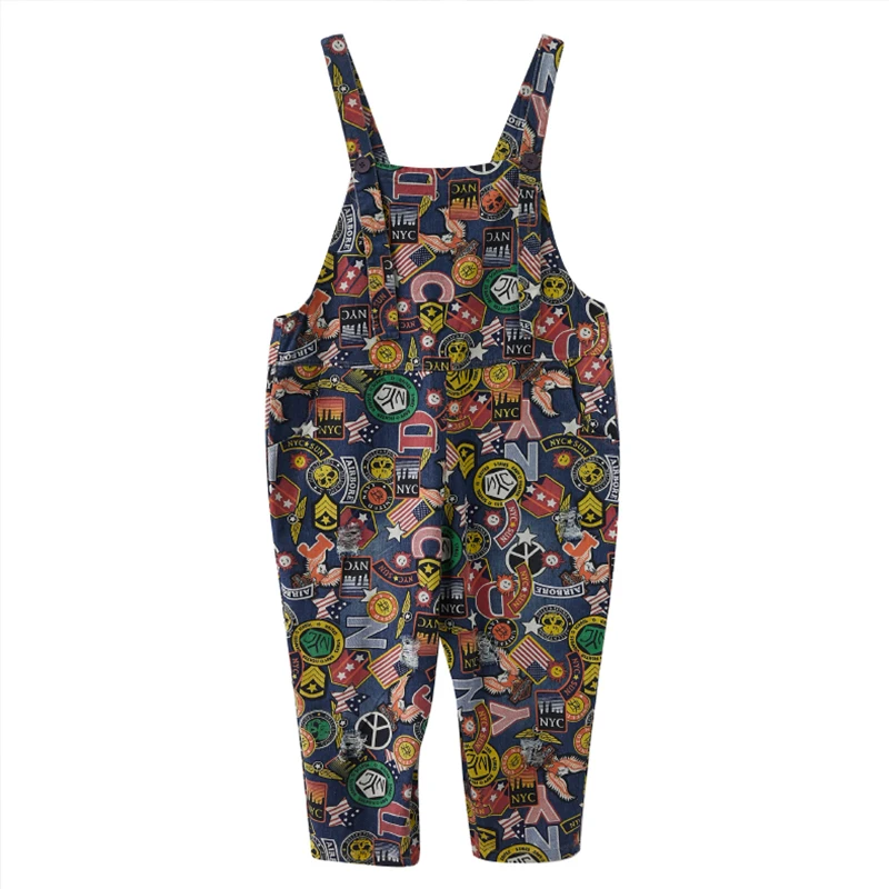 2025 Trendy Women Casual Denim Jumpsuit with Cartoon Print Loose Fit Harem Pants Adjustable Straps Comfortable and Stylish Spring Autumn Fashion JKP7226