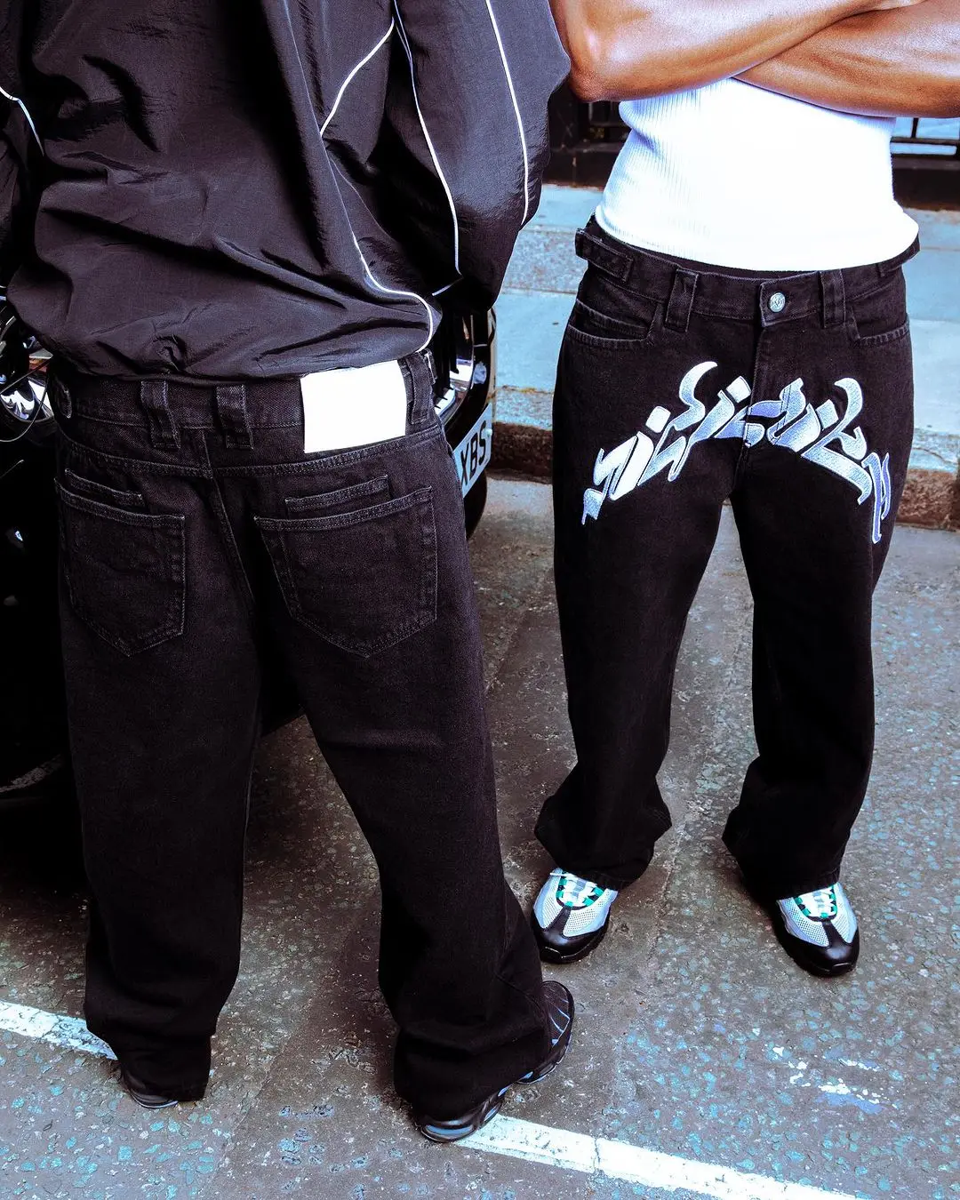 Upgrade your street look with these 2026 new men’s black baggy jeans, featuring bold letter embroidery and a Y2K hip-hop wide-leg fit. Designed for comfort and attitude, these punk-inspired denim pants deliver a relaxed straight cut perfect for streetwear, casual outfits, or high-fashion layering.