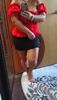 Well my pictures exactly the same as Oh. Material is lightly vinyl feeling. Chest size cotton small element