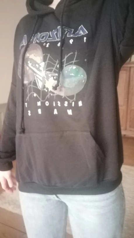 Hoodie is gorgeous!! A little bigger size than mine but it does not make it worse. Threads do not stick out, the colors are slightly darker than those in the photo. The delivery was fast (a little more than a month from china to moscow), in such a hoodie you can go outside if it is cool. the pocket is excellent, large, the hood is also beautiful. Of defects: a small smell of clothing, easy to wash i think. Advise order hoodies