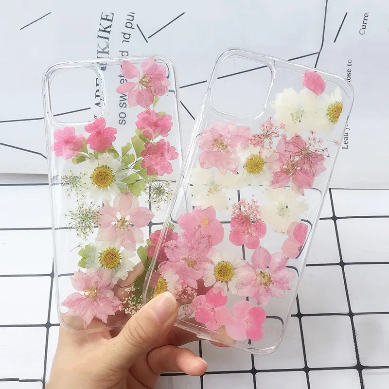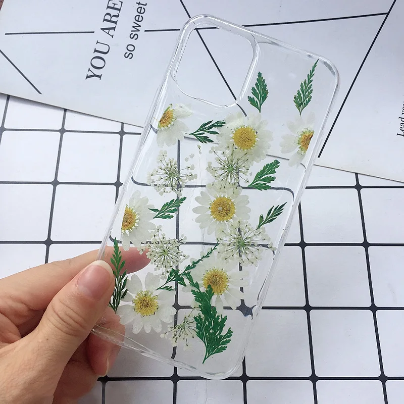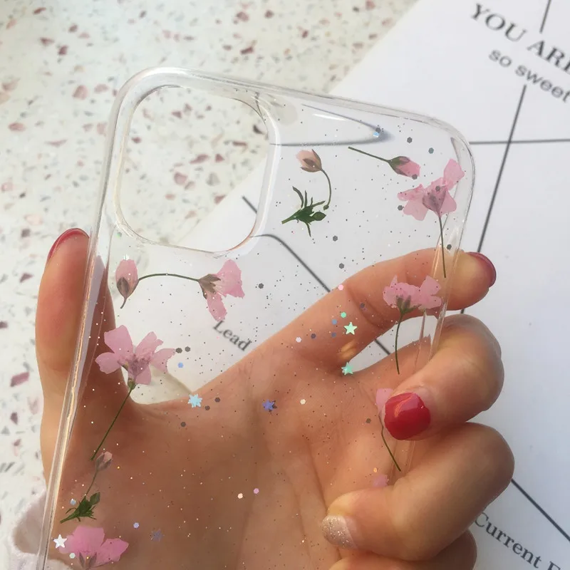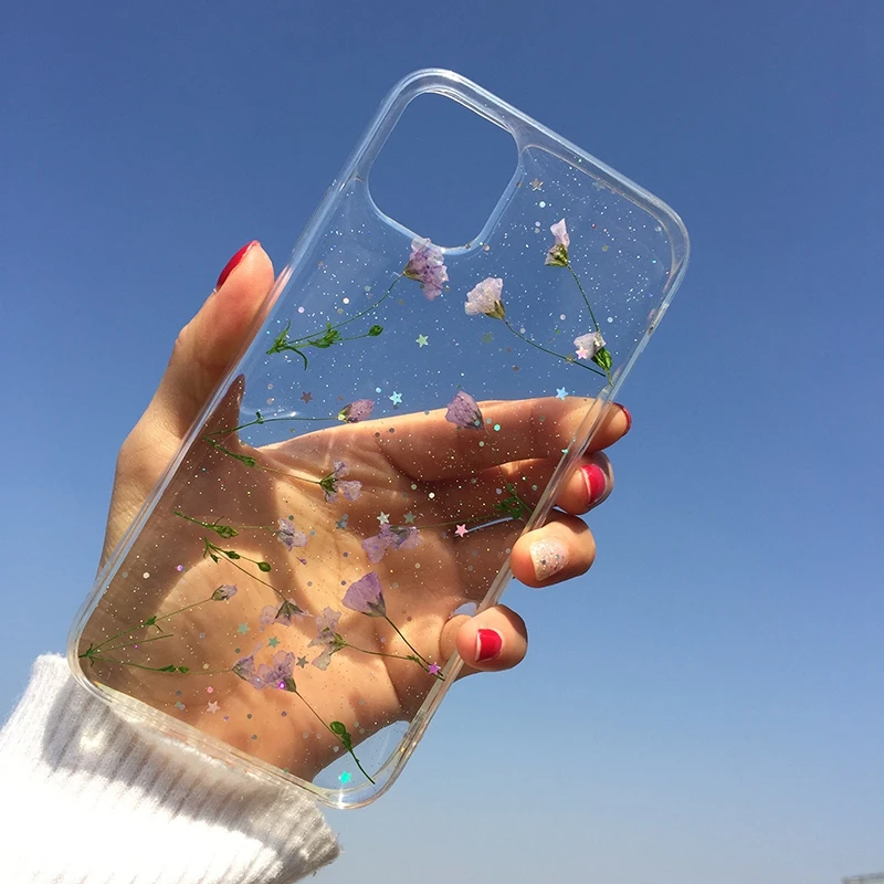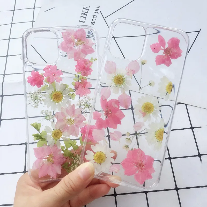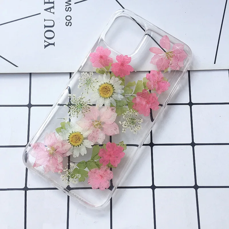 Very beautiful case with real flowers, I have a bit of a flower outside the gel and can be seen, that he was real. The edges are slightly rough, somewhere not