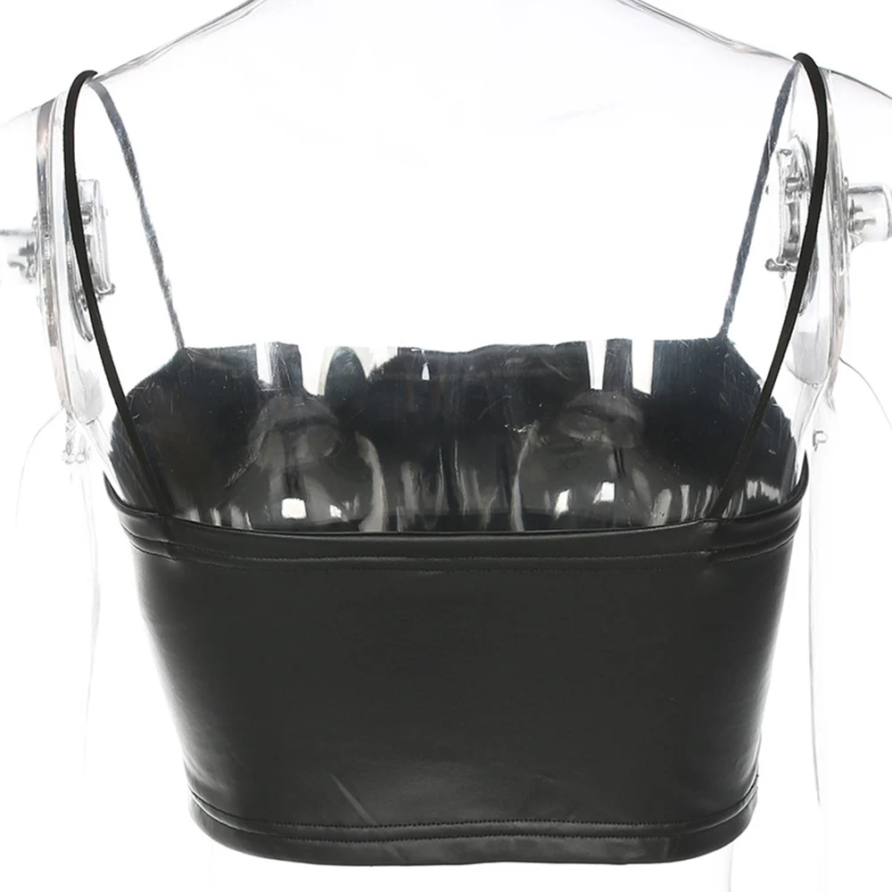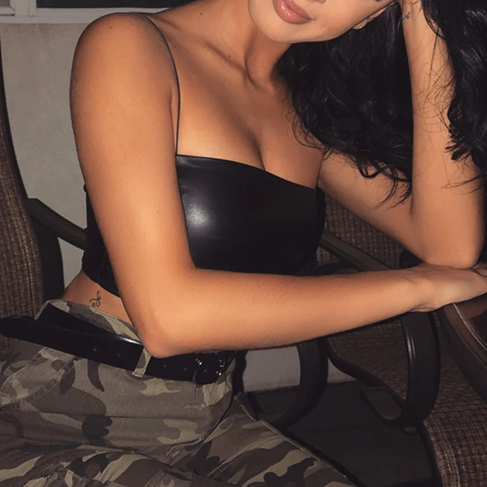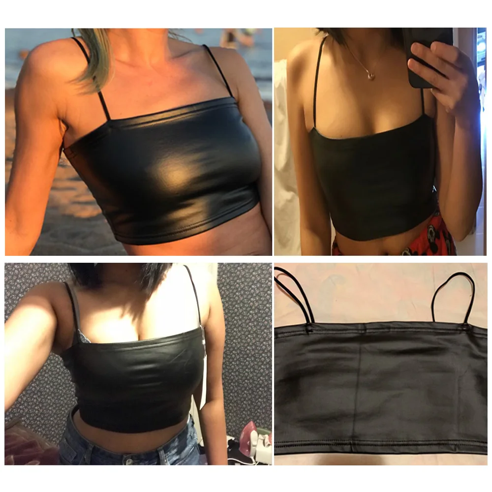 40% OFF PU Leather Summer Crop Top Skinny Sexy Sleeveless Short black Women Black Solid Slash Neck Ladies Streetwear Tank Vest Plus Size JKP2289