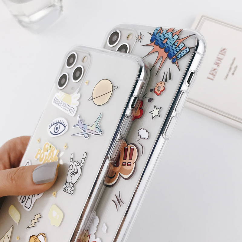 Abstract Cartoon Icon Clear Phone Case For iPhone SE 2020 11 Pro Max X XR Xs Max 6 7 8 Plus
