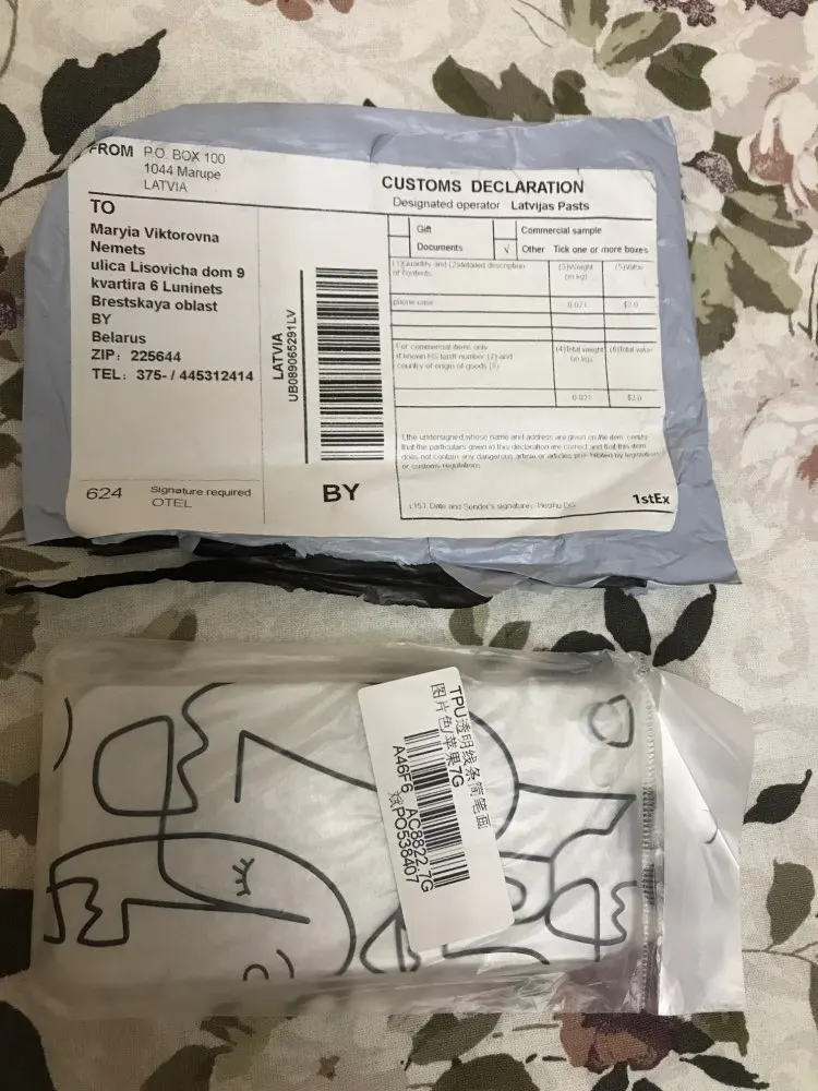 Parcel Arrived 18 days from the order (new post). I didn't talk to the store. Liked the colorful print and the correct fit of the case on the phone. A pleasant bonus was that silicone does not stick to the back of the phone glass panel. For such a funny price the quality is excellent.
