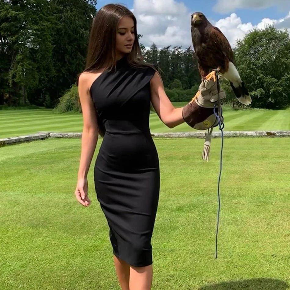 FREE SHIPPING New Summer Dress One Shoulder Black Bodycon Celebrity Evening Party Dress JKP4659