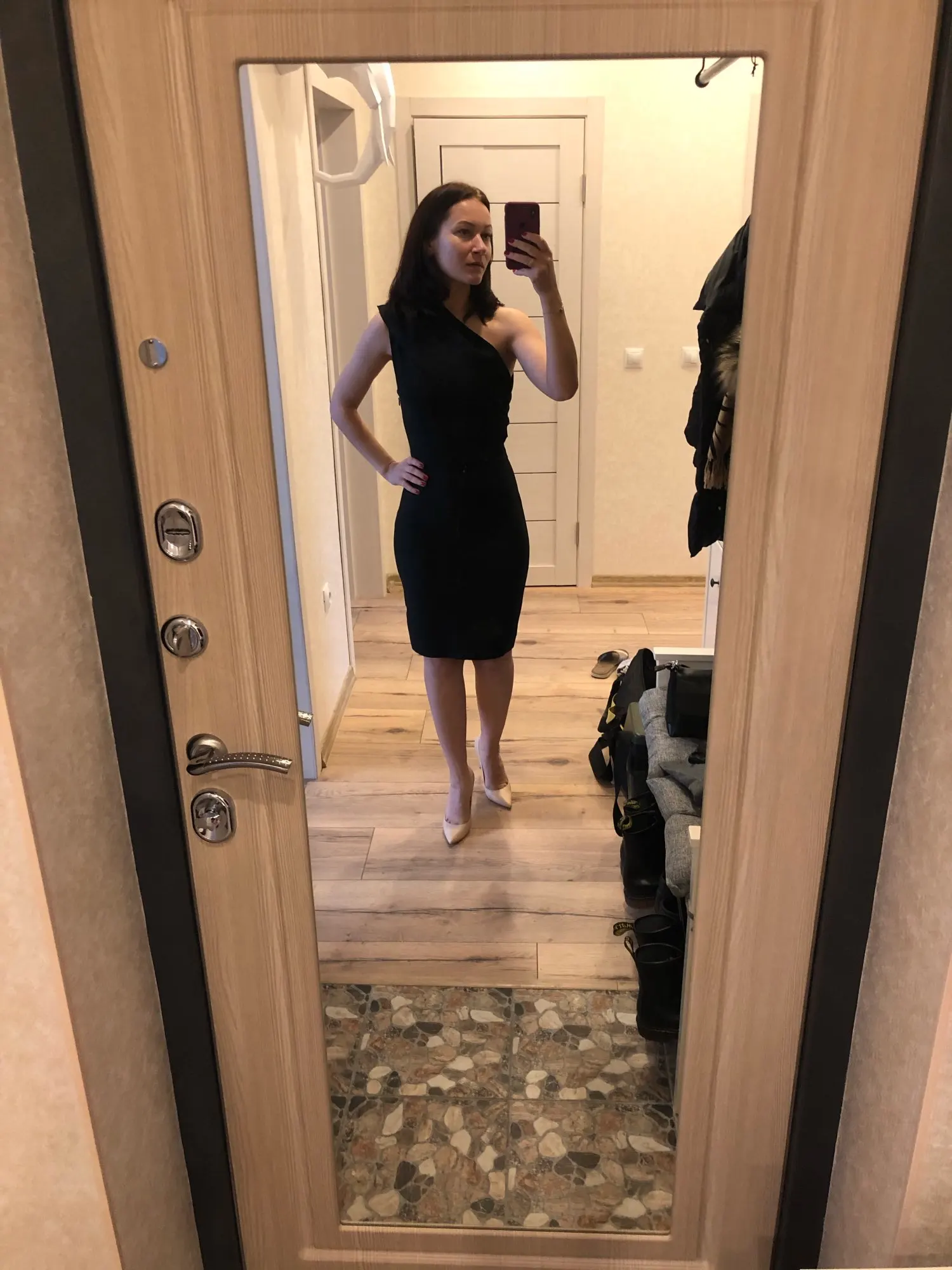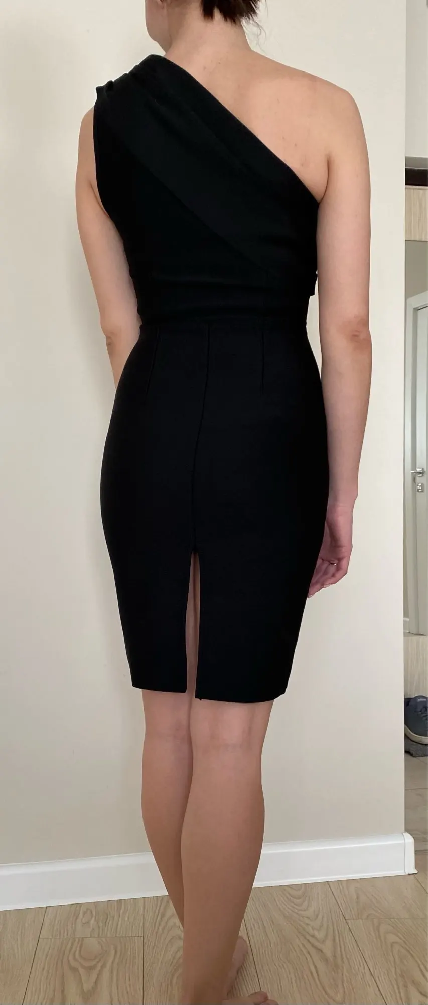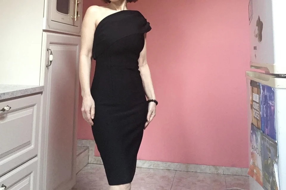 Very fast delivery, for 6 days in St. Petersburg. The dress is beautiful, the fabric is slightly shiny, dense, stretches well. On the parameters 90/67/94 approached the size m. But in the chest is slightly tight, but since the fabric stretches, it's normal. The shoulder lies well, everything is in shape. But the cut from behind is very large, I will sew a little. Height 172 cm. Slightly creeps up when moving, but it's not scary if you sew the cut.