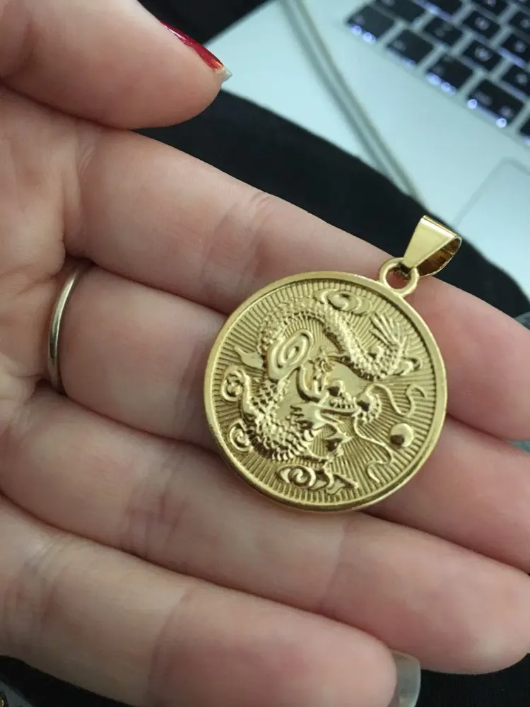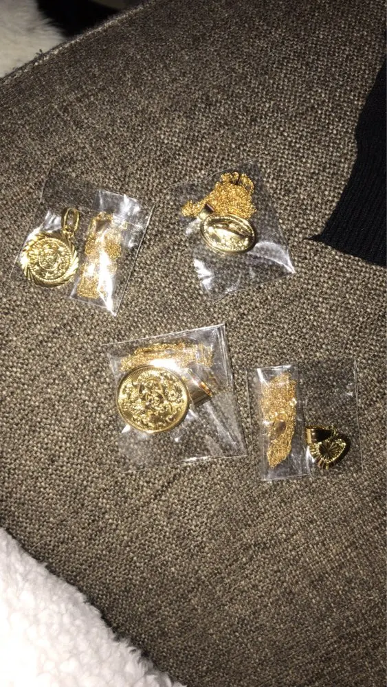 The product has a nice weight and came pretty quickly (2 weeks). The gold does look a little cheap but I think that fits with the vibe of the necklace itself. No complaints~
