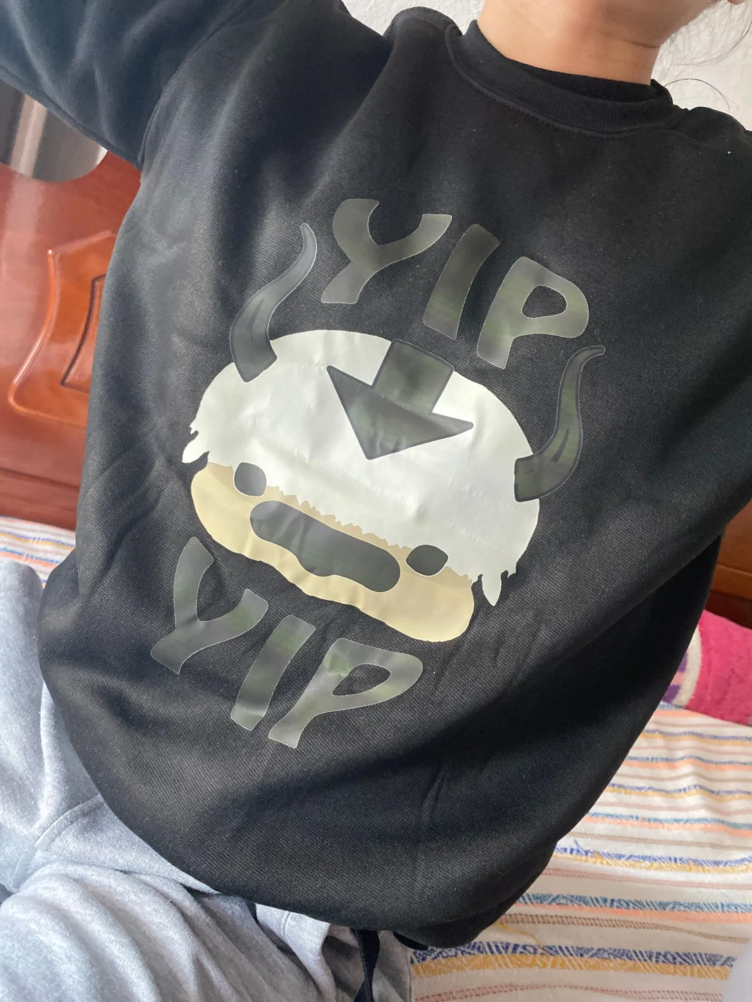Very father! Good quality sweatshirt, same color, very nice print, loveee it