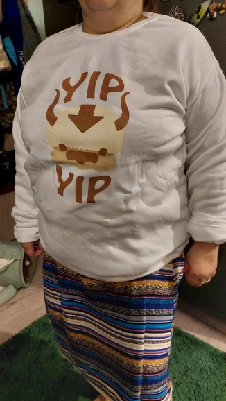 i am in love. it's a very nice sweatshirt, looks lovely and is very soft I do suggest sizing up. i did that to and 1 size up fits perfectly