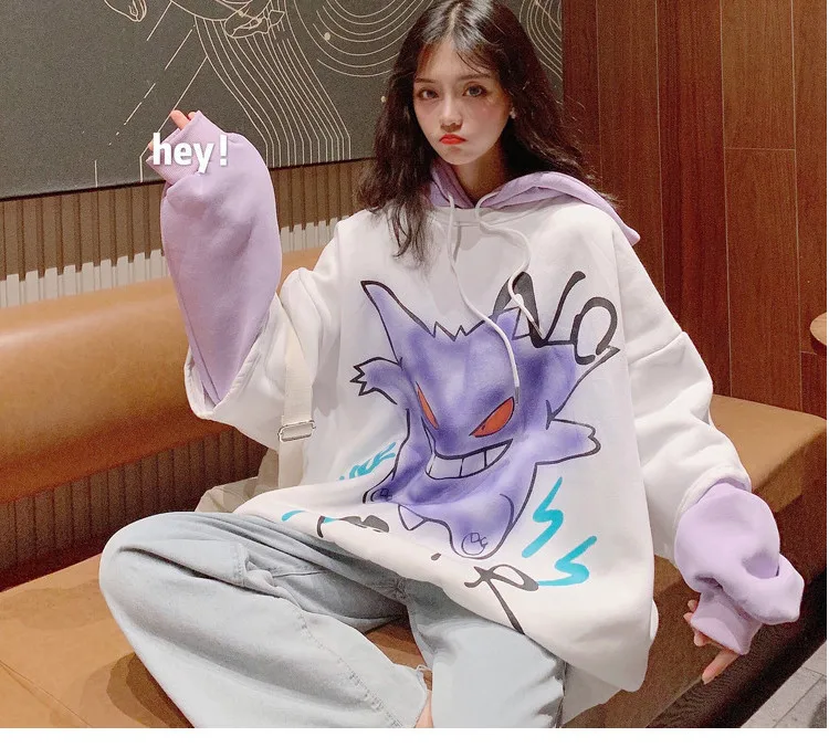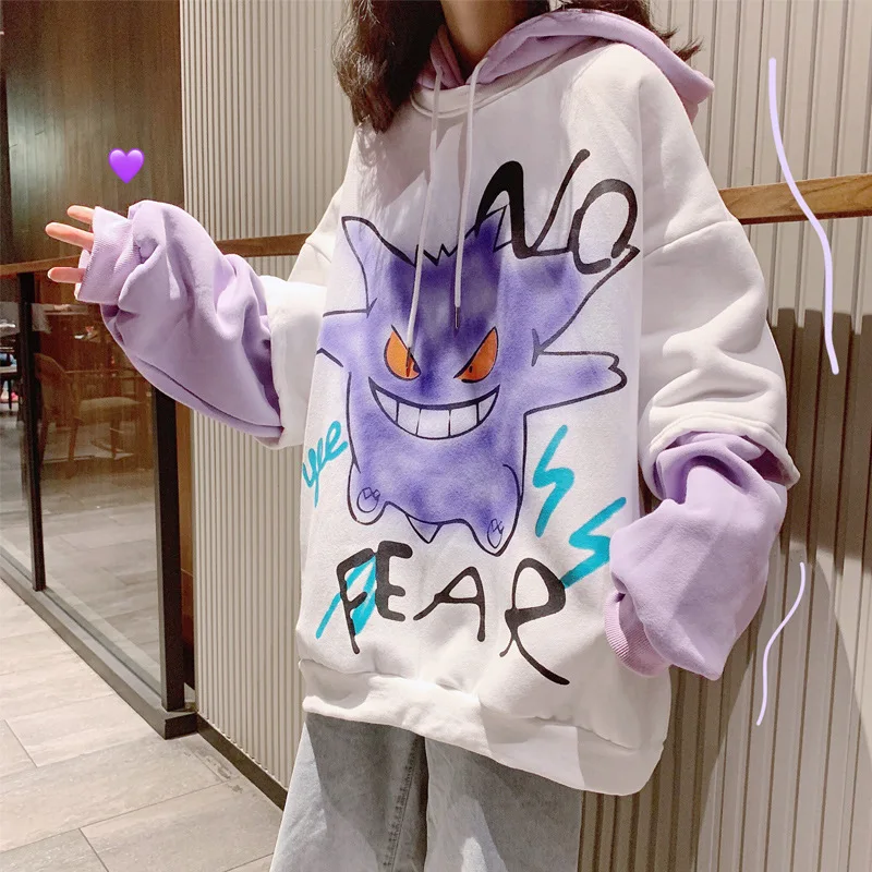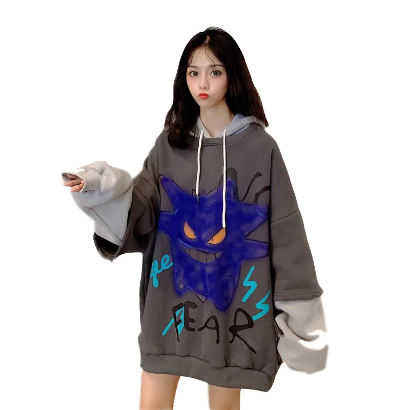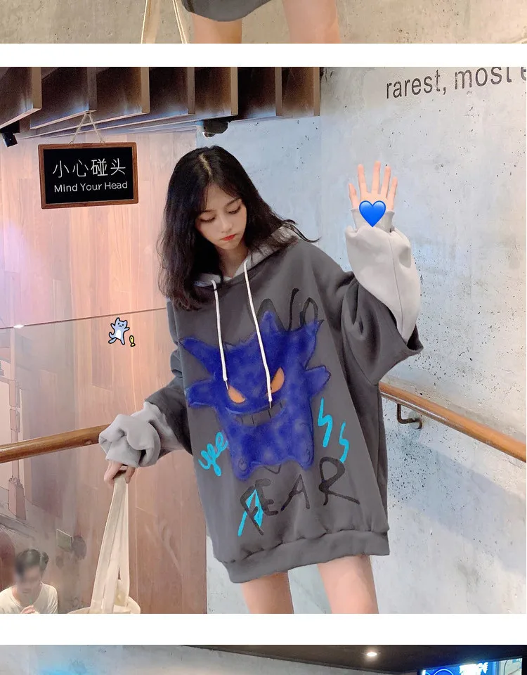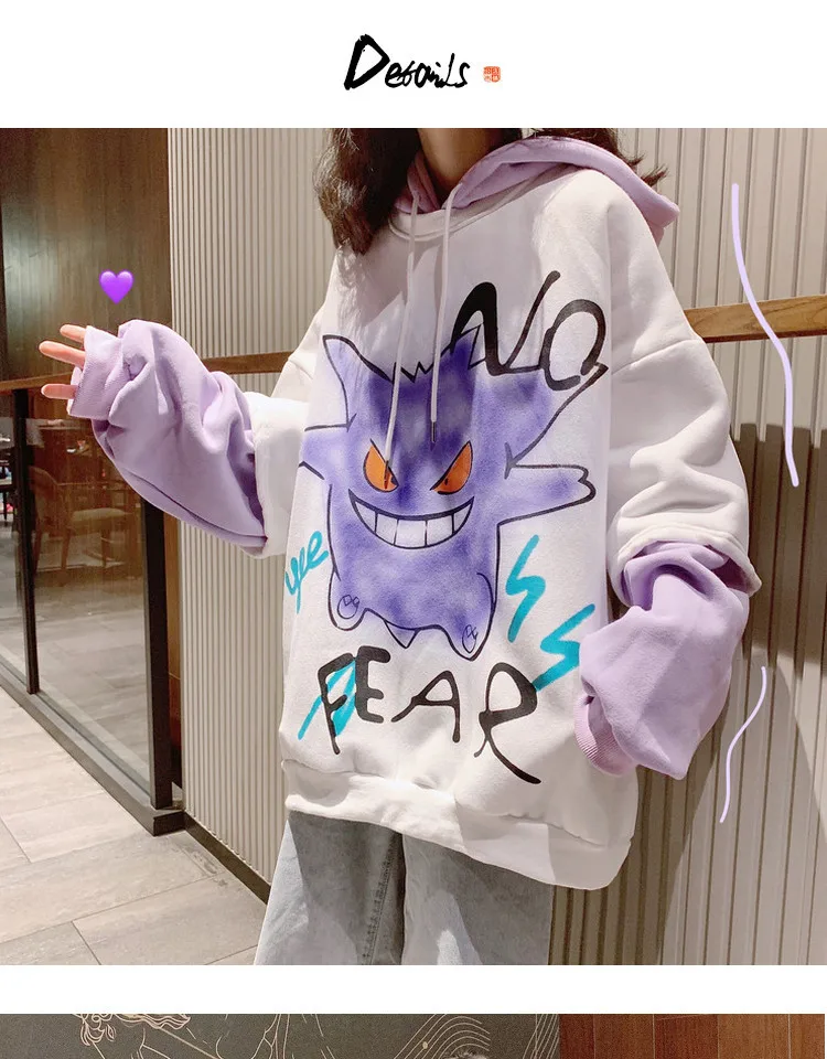 2020 Women’s Top Cartoon Mock Two-Piece Brushed Thick Hoodie Student Autumn Winter Korean-style Fashion Coat SweatShirt