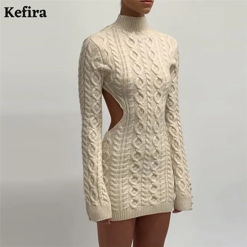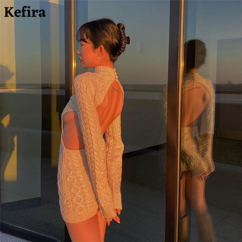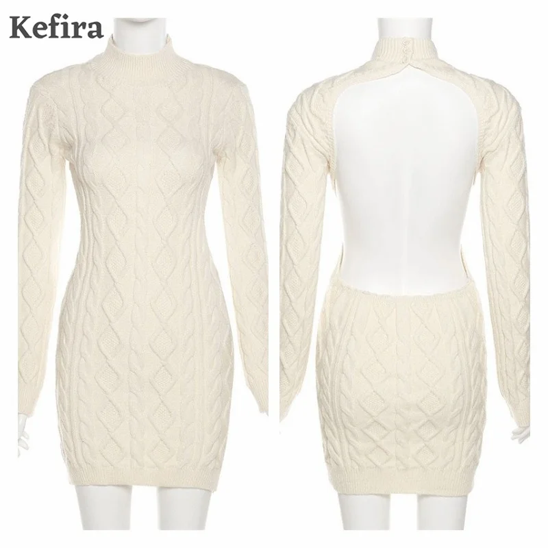 Autumn Winter Mini Sweater Dress Backless Knitted Bodycon Dresses JKP5913