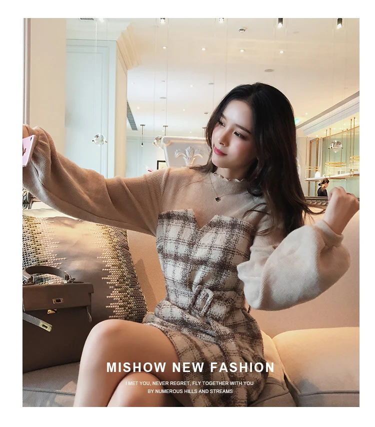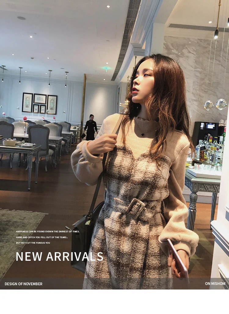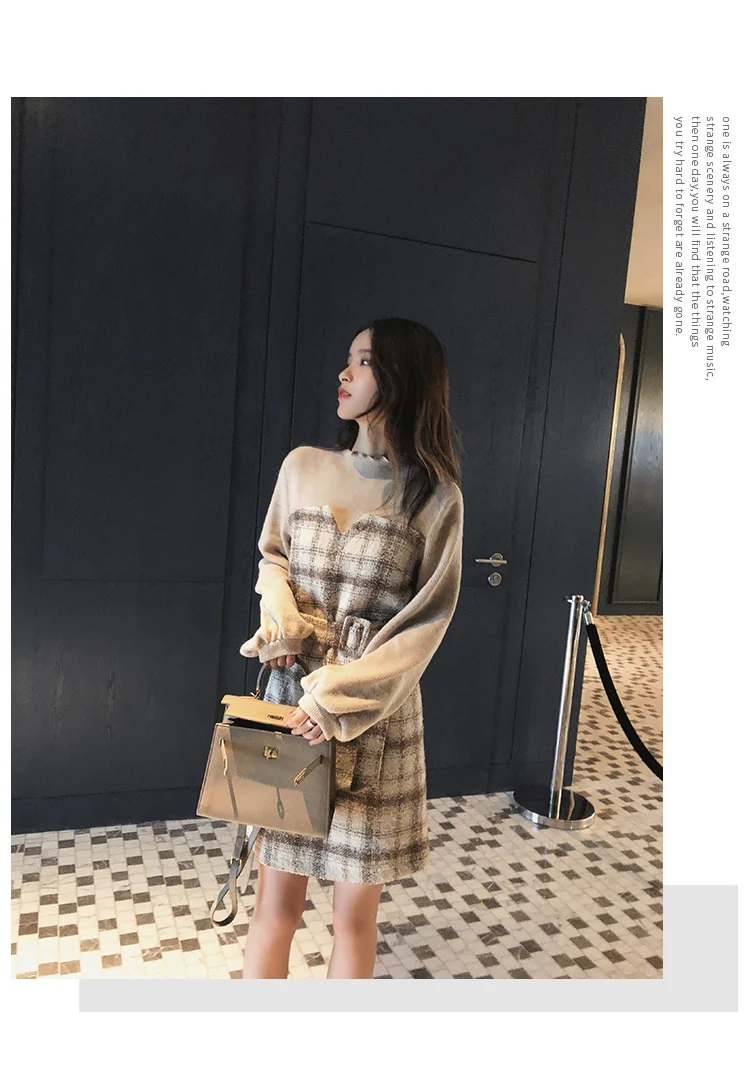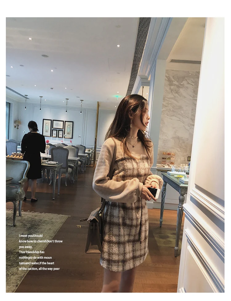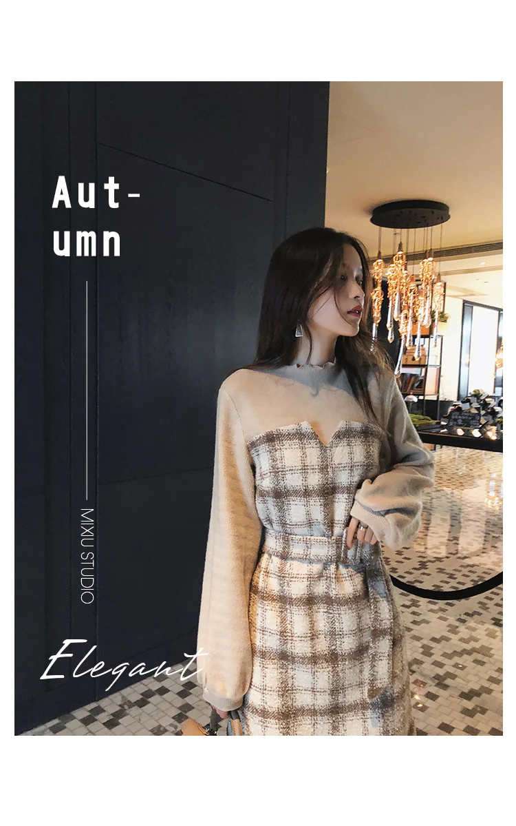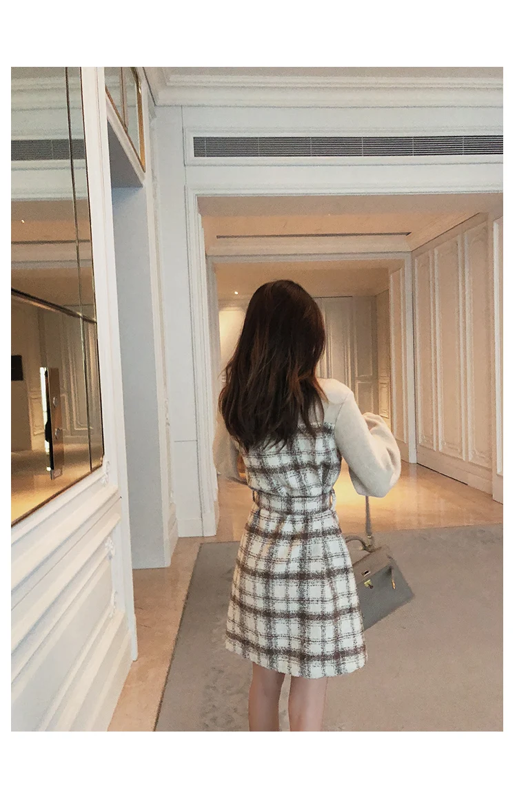 Autumn Winter Vintage Plaid Dress Korean Fashion Outfit Dresses