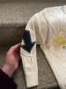 Very cool cardigan! The quality is very good, all patches are sewn on the conscience. Polyester, but very good quality. Size L sits perfectly on the actual size S and height 179 cm.