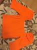 Delivery 2 weeks, zip package, factory, odorless. Size L on og-100, ot-75, came up perfectly! The color is bright orange.