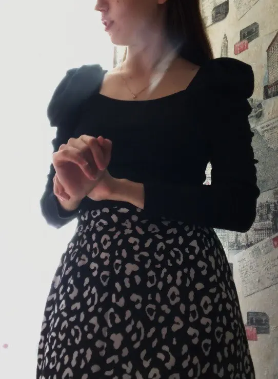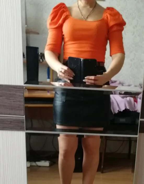 The parcel came very quickly, the top is very steep, the color is brighter than it turned out in the photo, the fabric is pleasant to the body, sat perfectly, the sleeves really stand, I highly recommend