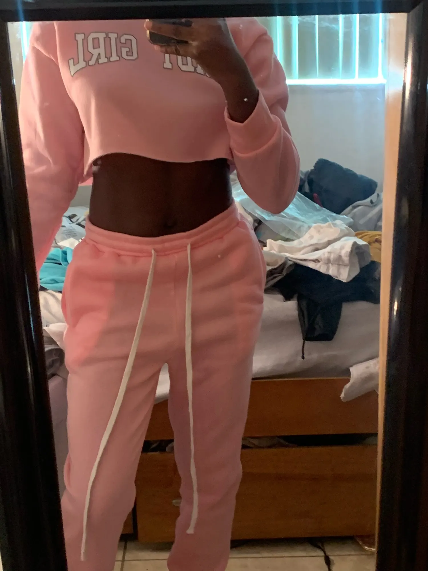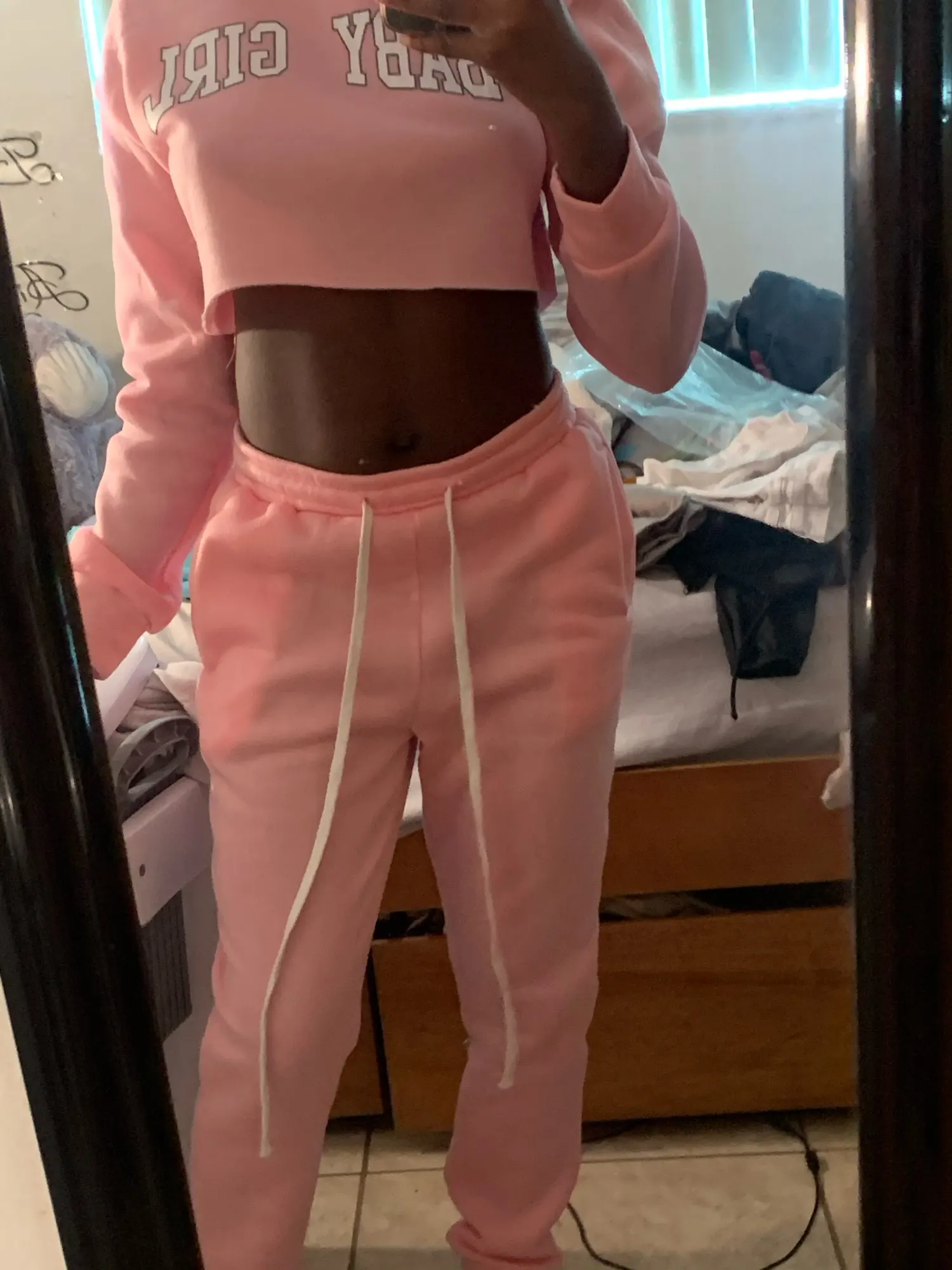 It's transparent a little but with clarita underwear all right, right size, the sweatshirt a little short