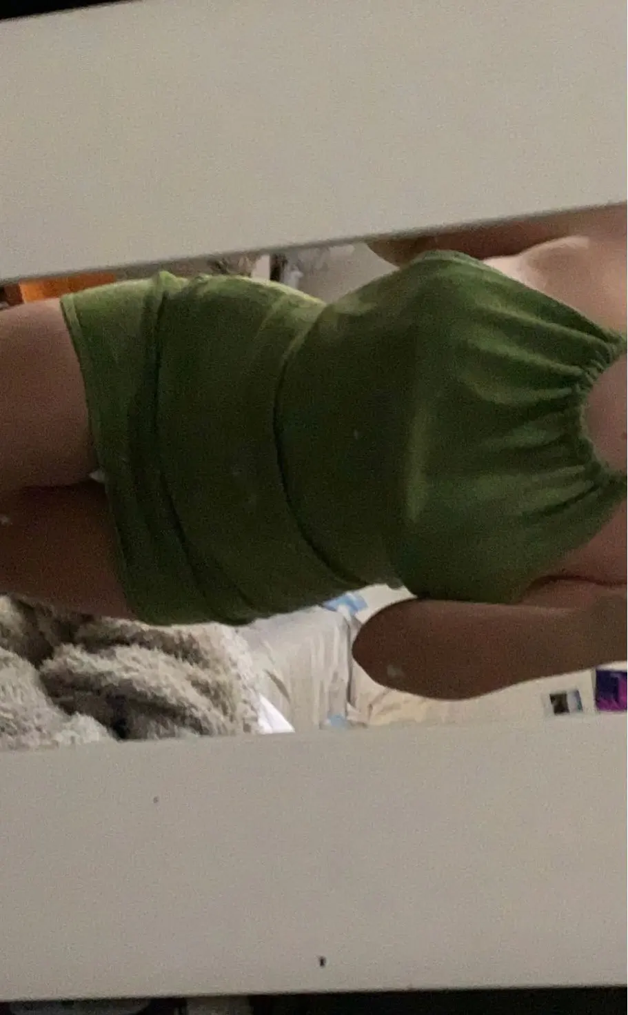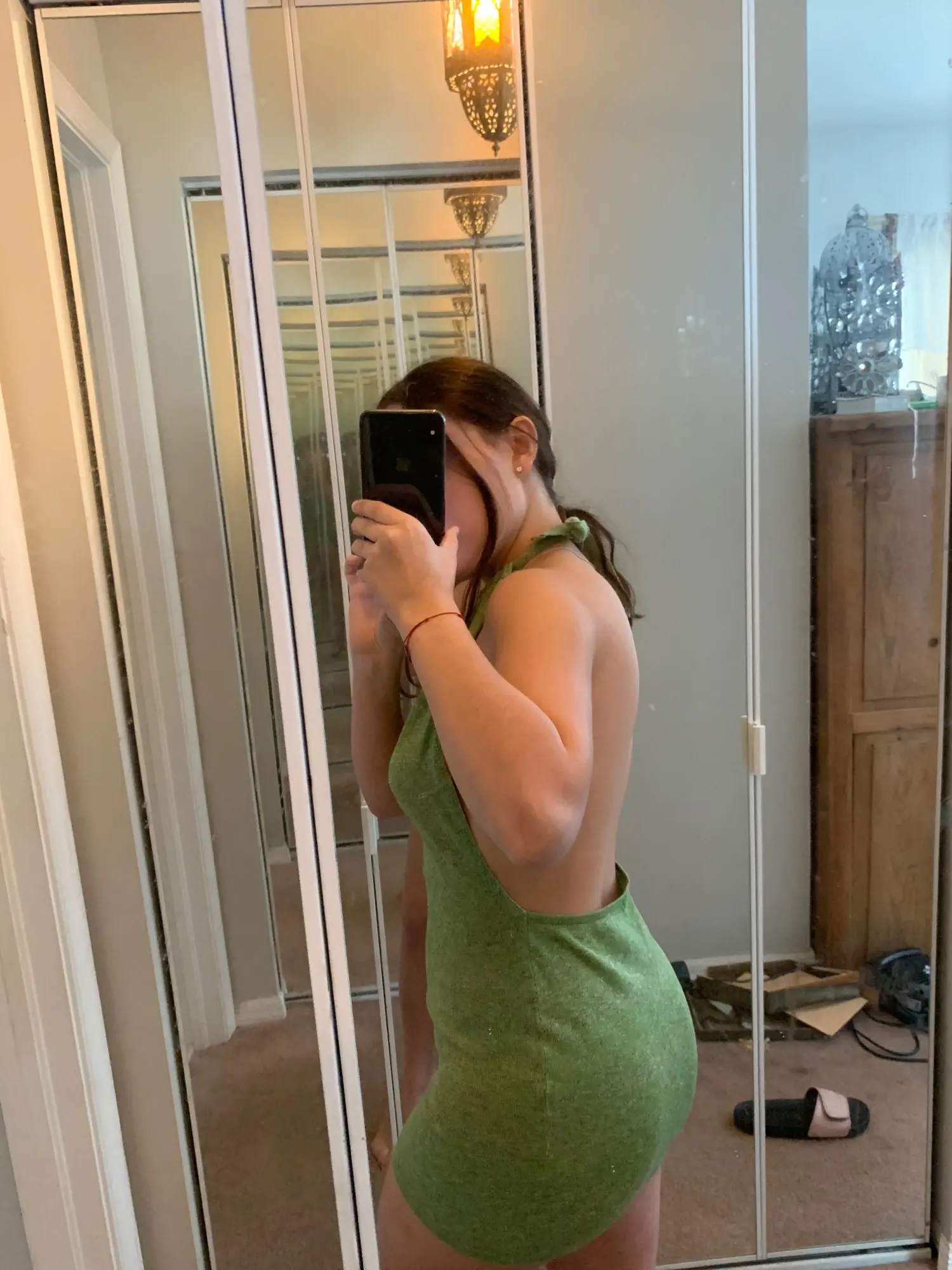 It’s very cute and the fabric feels very soft. It looks so cute from the back but also shows side boob if you don’t mind it. Kinda short but it’s still so cute can’t wait to wear