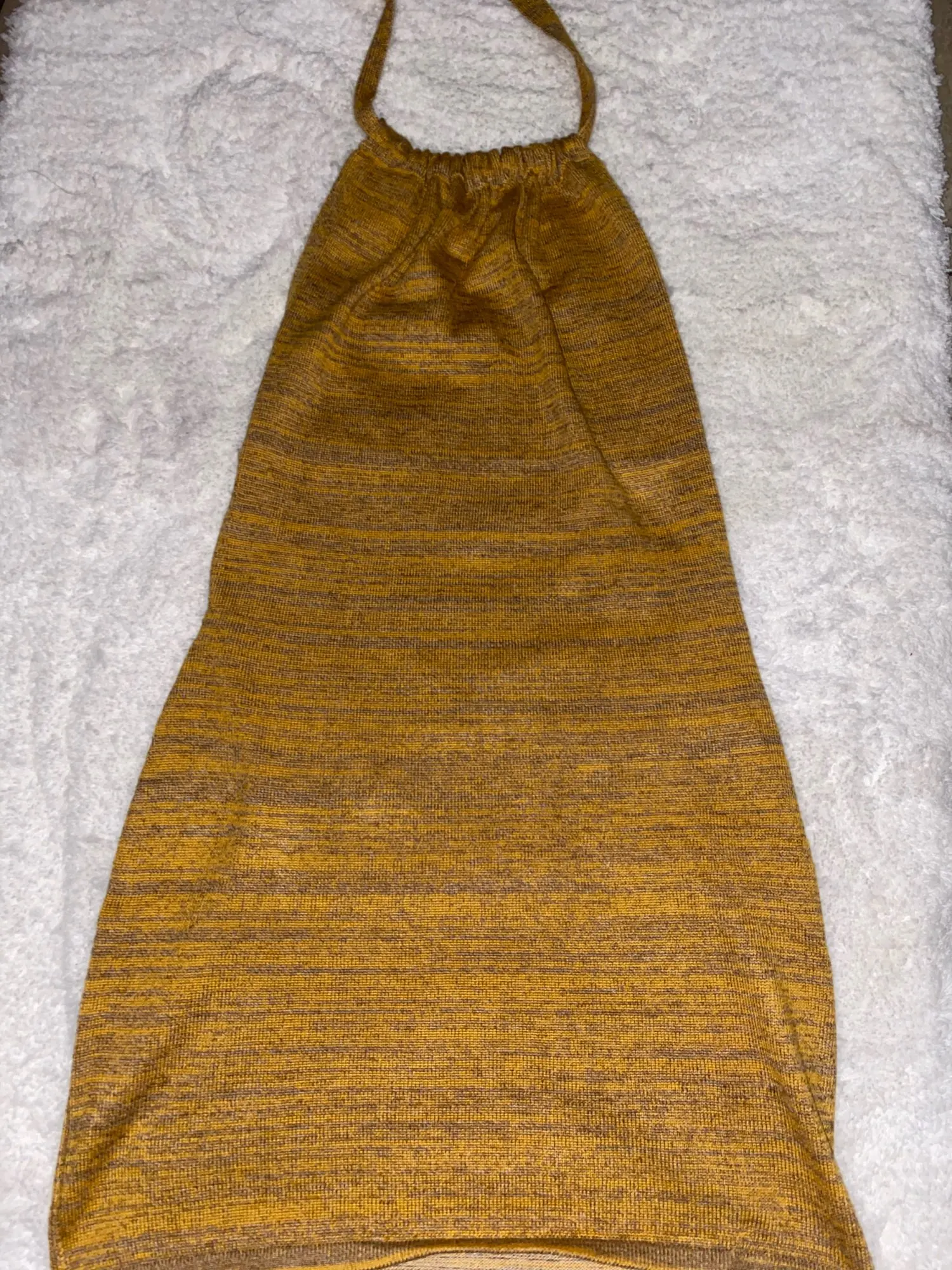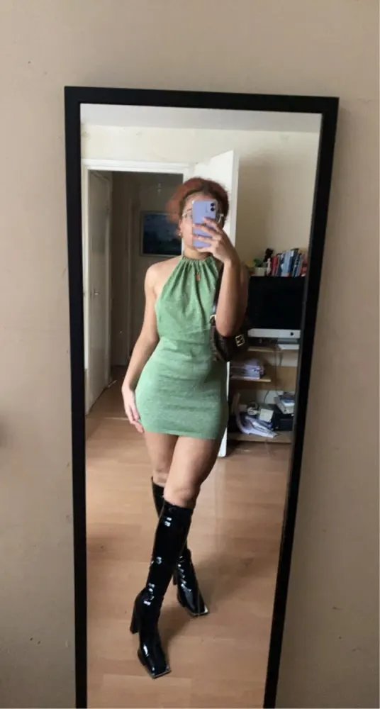 Such a. The dress!! I am a size 8-10 UK and 5’2.The dress fits great! I am a 32B in cup size so the top was a little big but if you have larger boobs the dress will fit great on top. It’s made of a knitted material and feels amazing! Can’t wait to wear in the summer !! Shipping took like 10 days to the UK